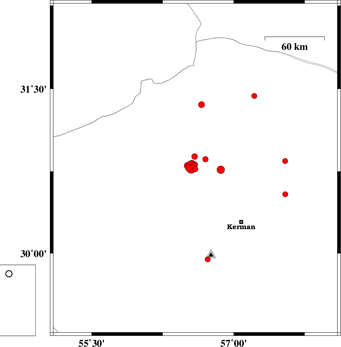| 2016/10/21 | 09:46:34.8 | 13:16:34.8 | 30.796 | 56.522 | 11 | ML3 | Kerman Province, 5 km of Zarand | ||