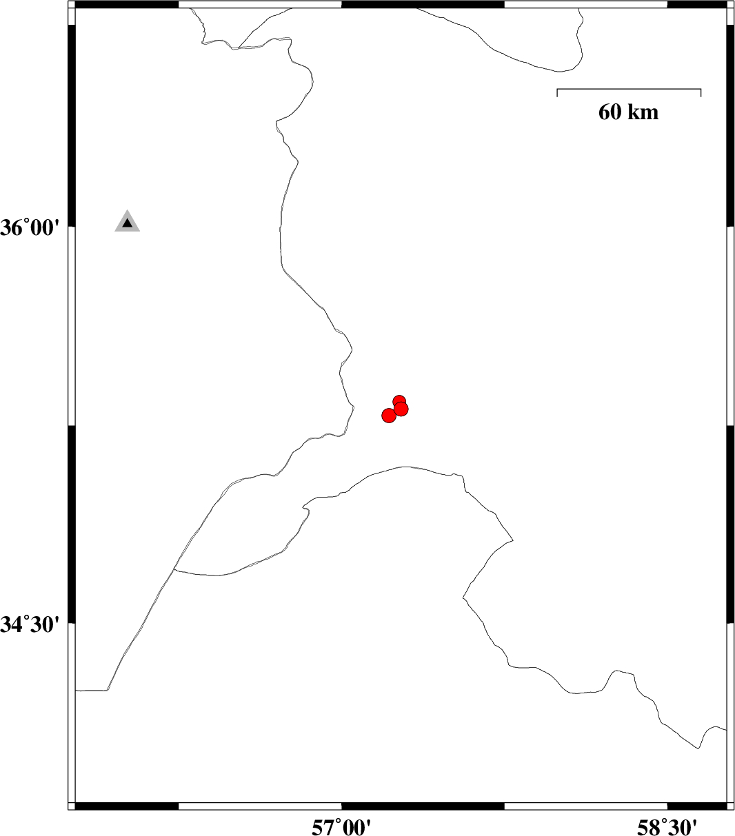 | 2016/10/30 | 11:38:03.5 | 15:08:03.5 | 35.34 | 57.266 | 15 | ML2.7 | Khorasan(center) Province, 63 km -West of Bardeskan |