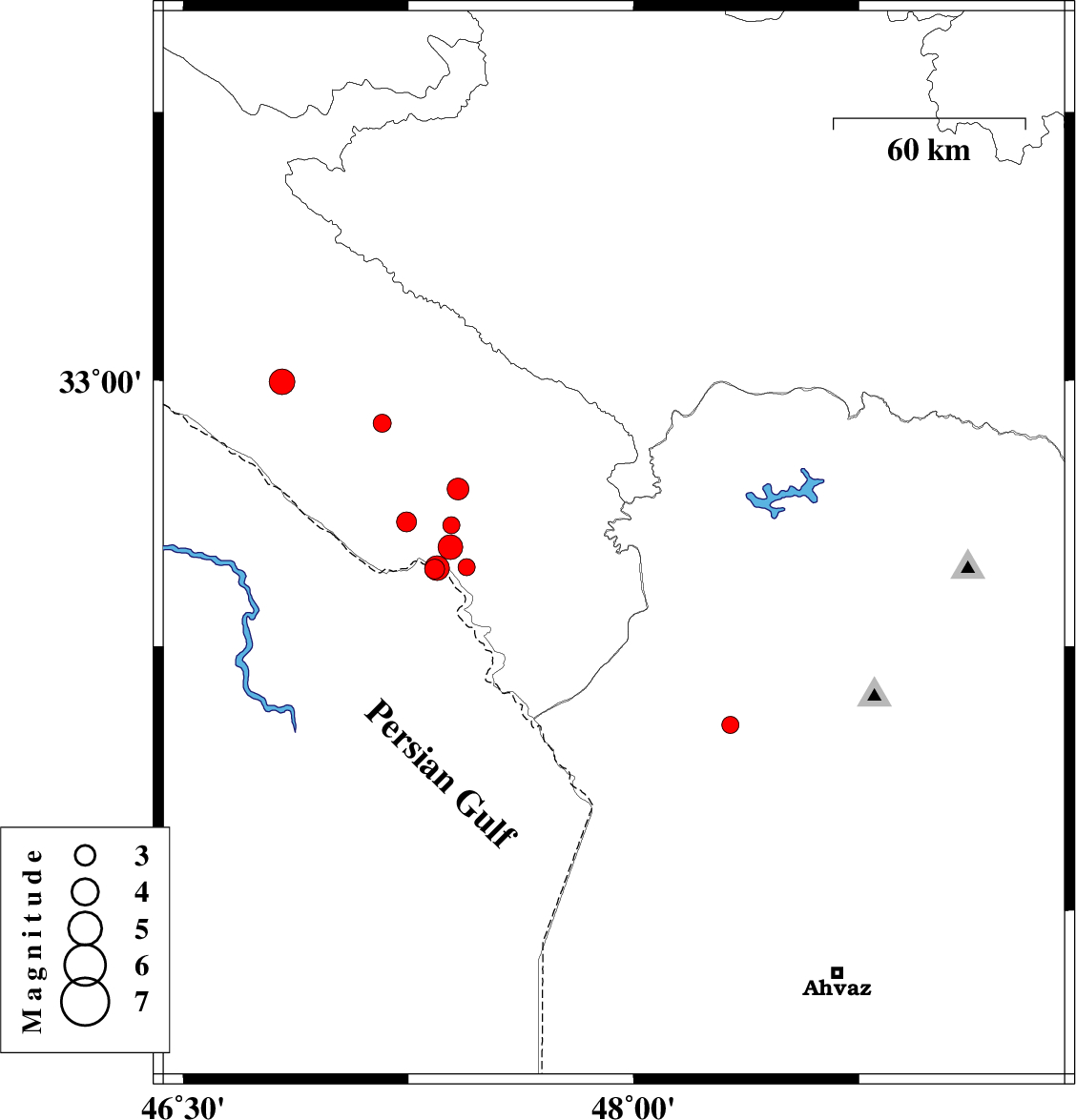 | 2016/10/27 | 20:08:25.7 | 23:38:25.7 | 32.635 | 47.956 | 14 | ML3.2 | Ilam Province, 42 km North-West of Andimeshk | ||