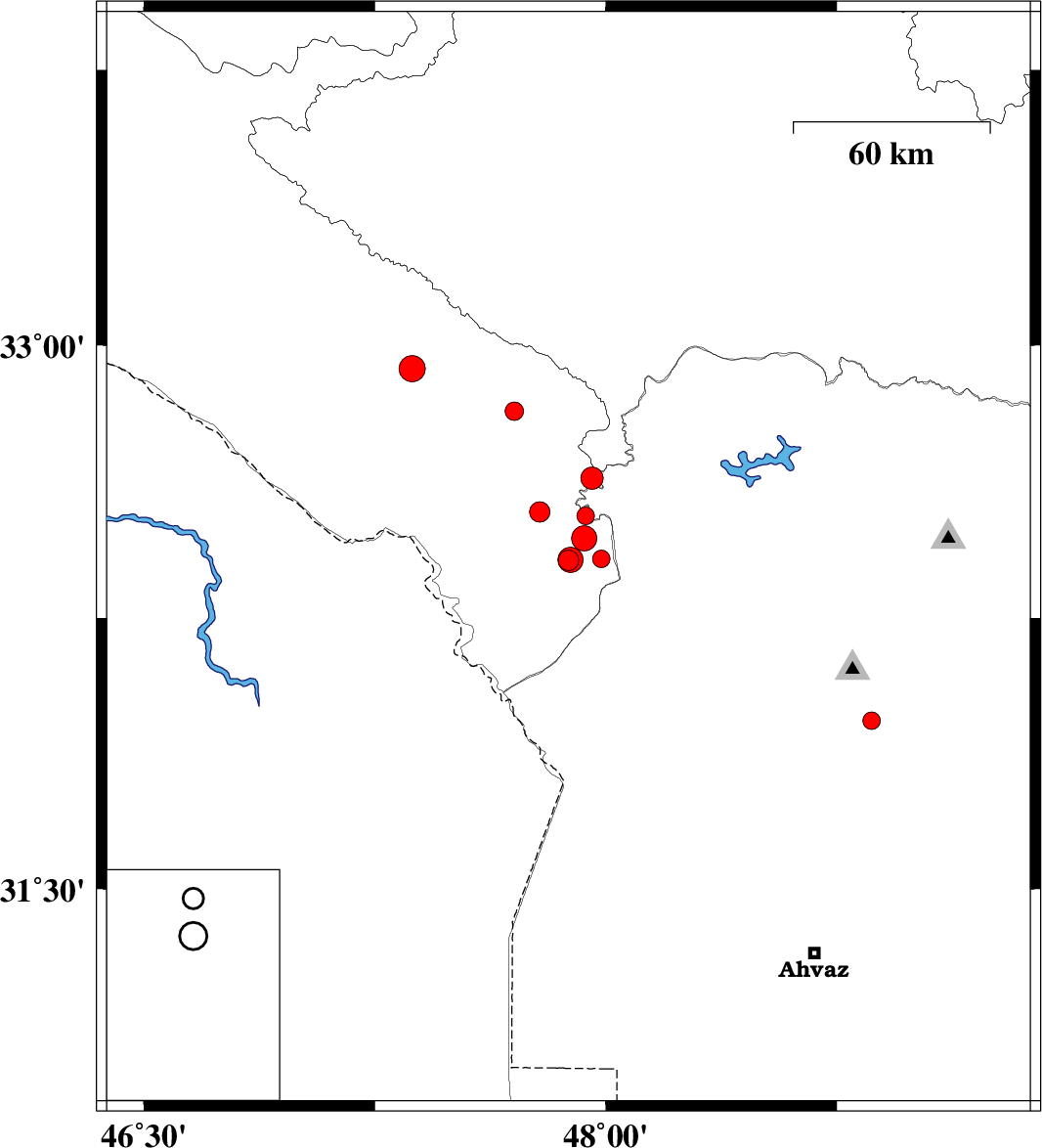 | 2016/10/27 | 20:08:25.7 | 23:38:25.7 | 32.635 | 47.956 | 14 | ML3.2 | Ilam Province, 42 km North-West of Andimeshk | ||