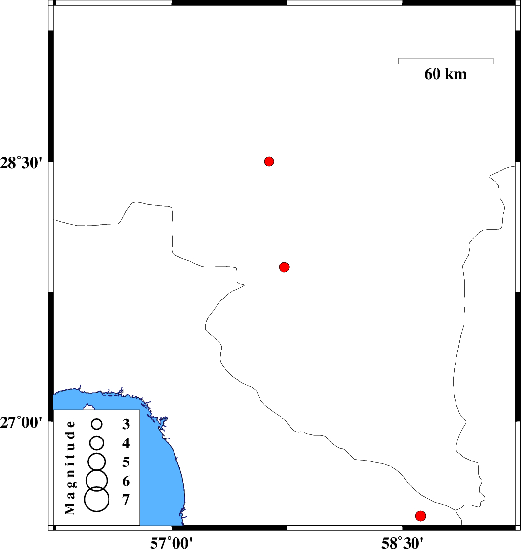 | 2016/10/31 | 06:55:53.2 | 10:25:53.2 | 28.501 | 57.634 | 14 | ML2.7 | Kerman Province, 21 km South-West of Jiroft |