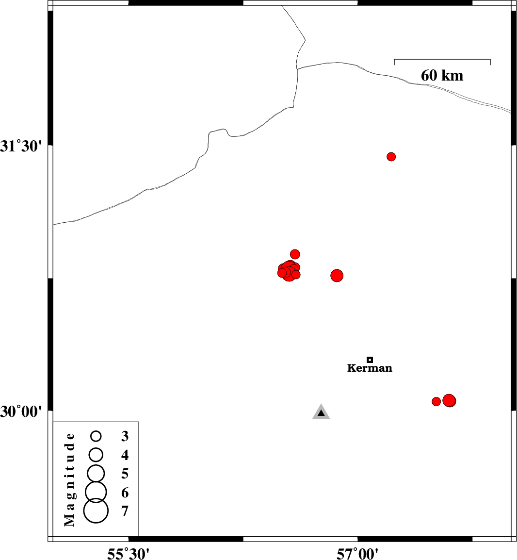 | 2016/11/10 | 15:20:09.5 | 18:50:09.5 | 30.058 | 57.597 | 7 | ML3.6 | Kerman Province, 56 km South-East of Kerman | ||
