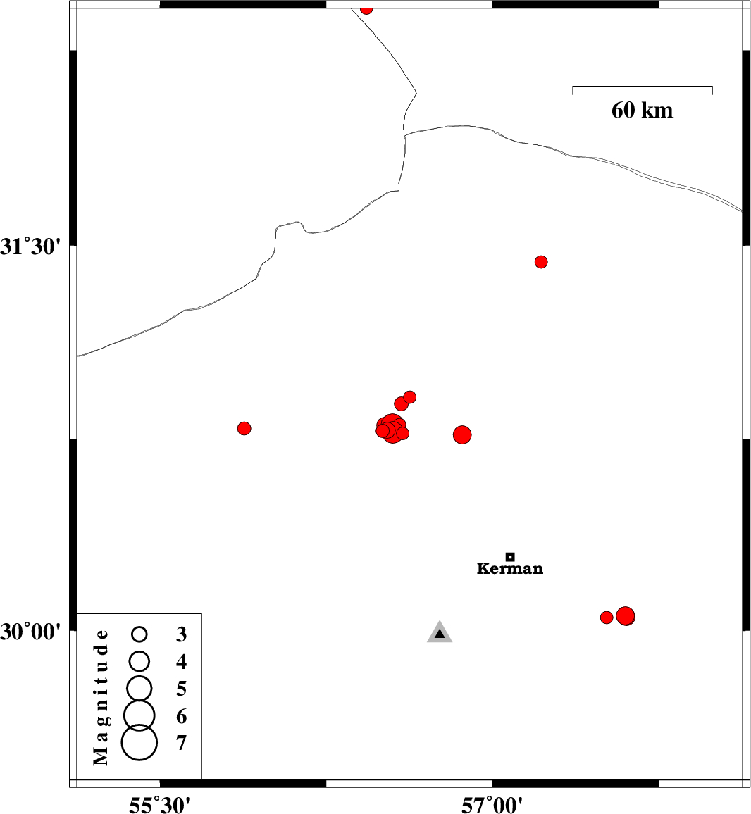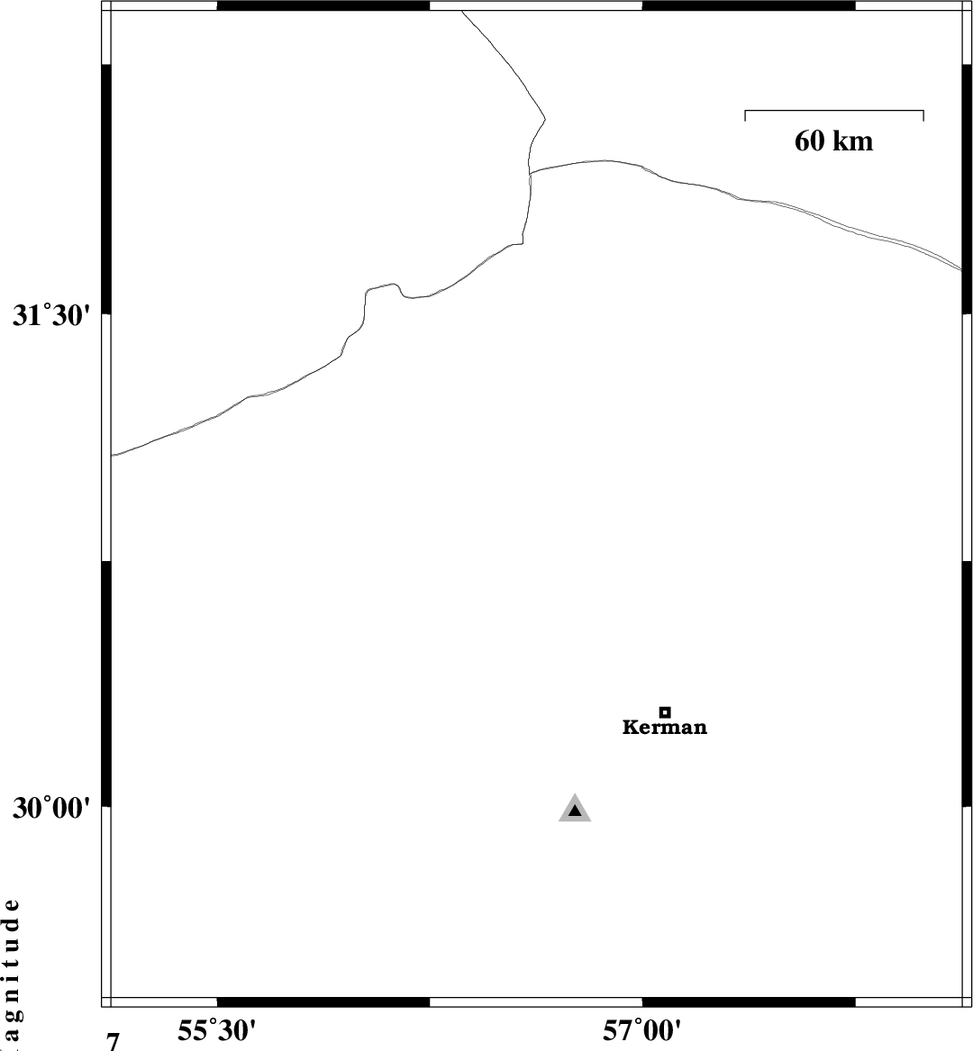 | 2016/11/10 | 15:20:09.5 | 18:50:09.5 | 30.058 | 57.597 | 7 | ML3.6 | Kerman Province, 56 km South-East of Kerman | ||