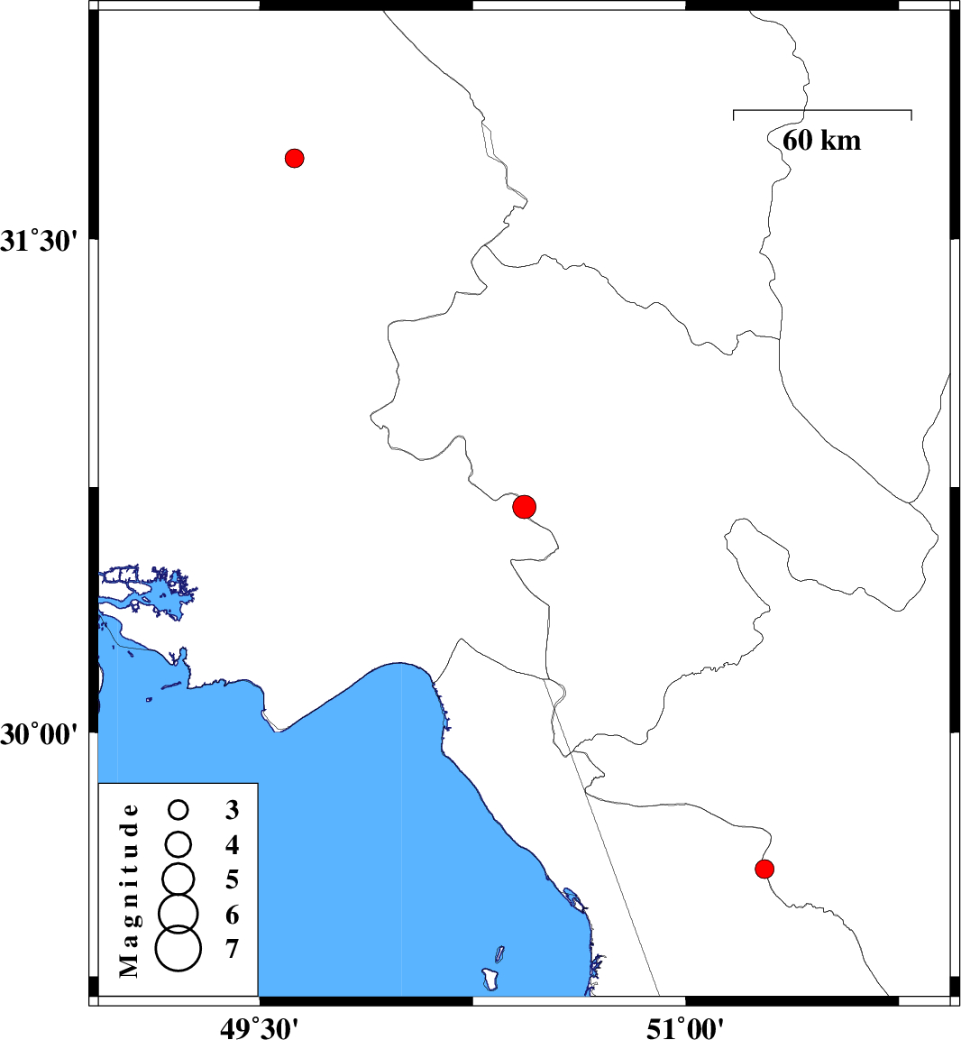 | 2016/11/17 | 21:27:49.3 | 00:57:49.3 | 29.581 | 51.278 | 6 | ML2.9 | Bushehr Province, 36 km North of Borazjan |