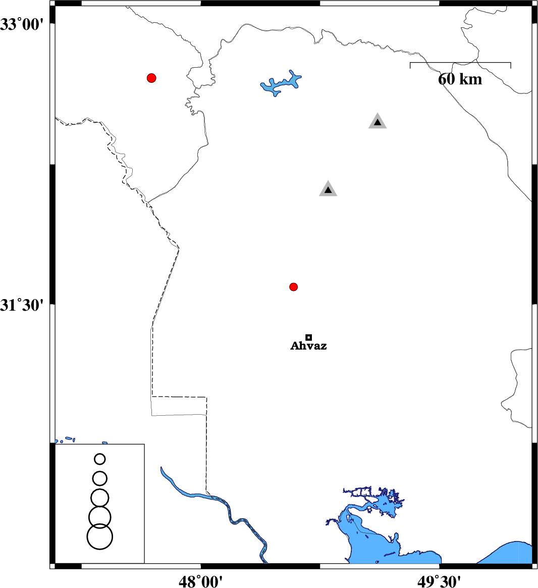 | 2016/12/02 | 20:15:18.4 | 23:45:18.4 | 31.593 | 48.583 | 15 | ML2.3 | Khoozestan Province, 32 km North of Ahvaz | ||