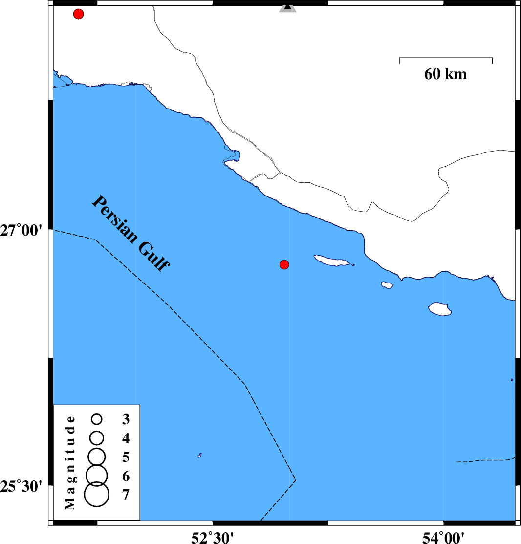 | 2016/12/02 | 00:55:48.7 | 04:25:48.7 | 26.794 | 52.965 | 14 | ML2.7 | Persian Gulf, 63 km South-West of Lamerd | ||