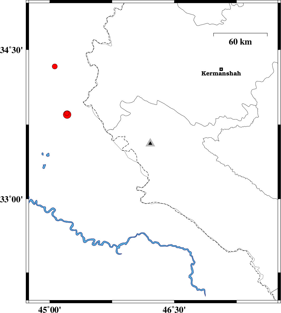 | 2016/11/17 | 16:28:01.9 | 19:58:01.9 | 33.186 | 47.543 | 14 | ML2.8 | Lorestan Province, 16 km -West of Pol-e dokhtar | ||