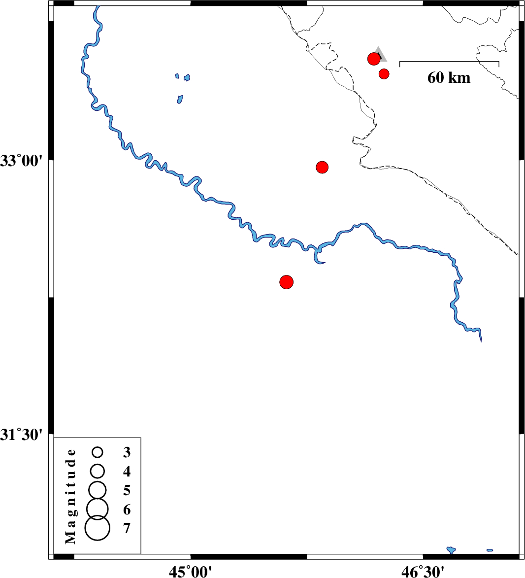 | 2016/11/18 | 01:57:05.0 | 05:27:05.0 | 32.96 | 45.848 | 6 | ML3.5 | Iraq, 35 km South-West of Mehran | ||
