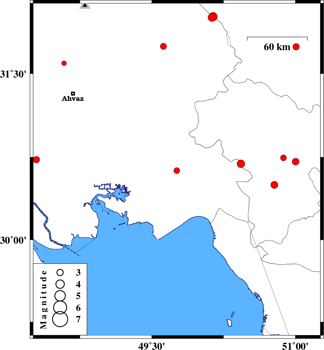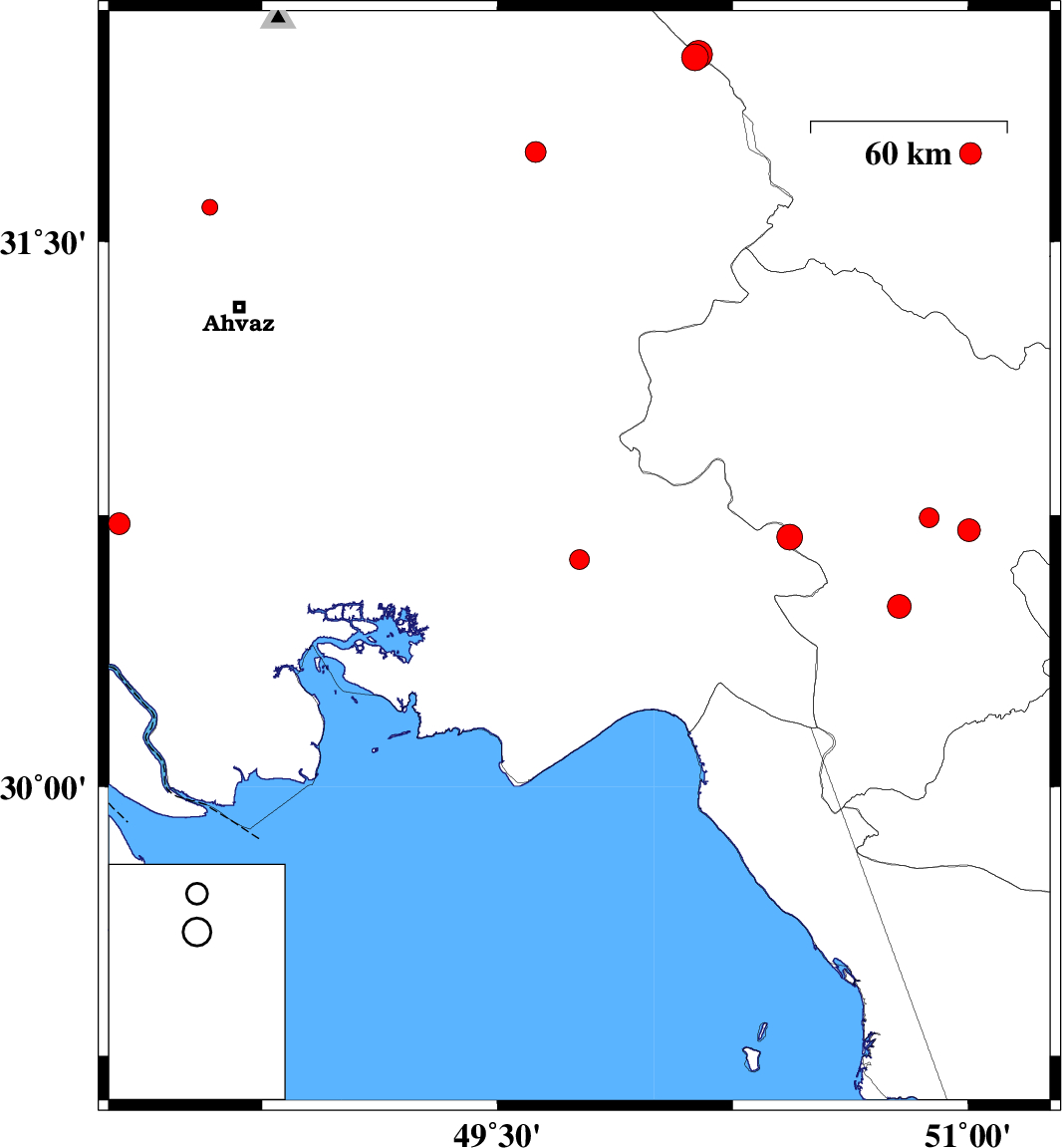 | 2016/12/02 | 20:15:18.4 | 23:45:18.4 | 31.593 | 48.583 | 15 | ML2.3 | Khoozestan Province, 32 km North of Ahvaz | ||