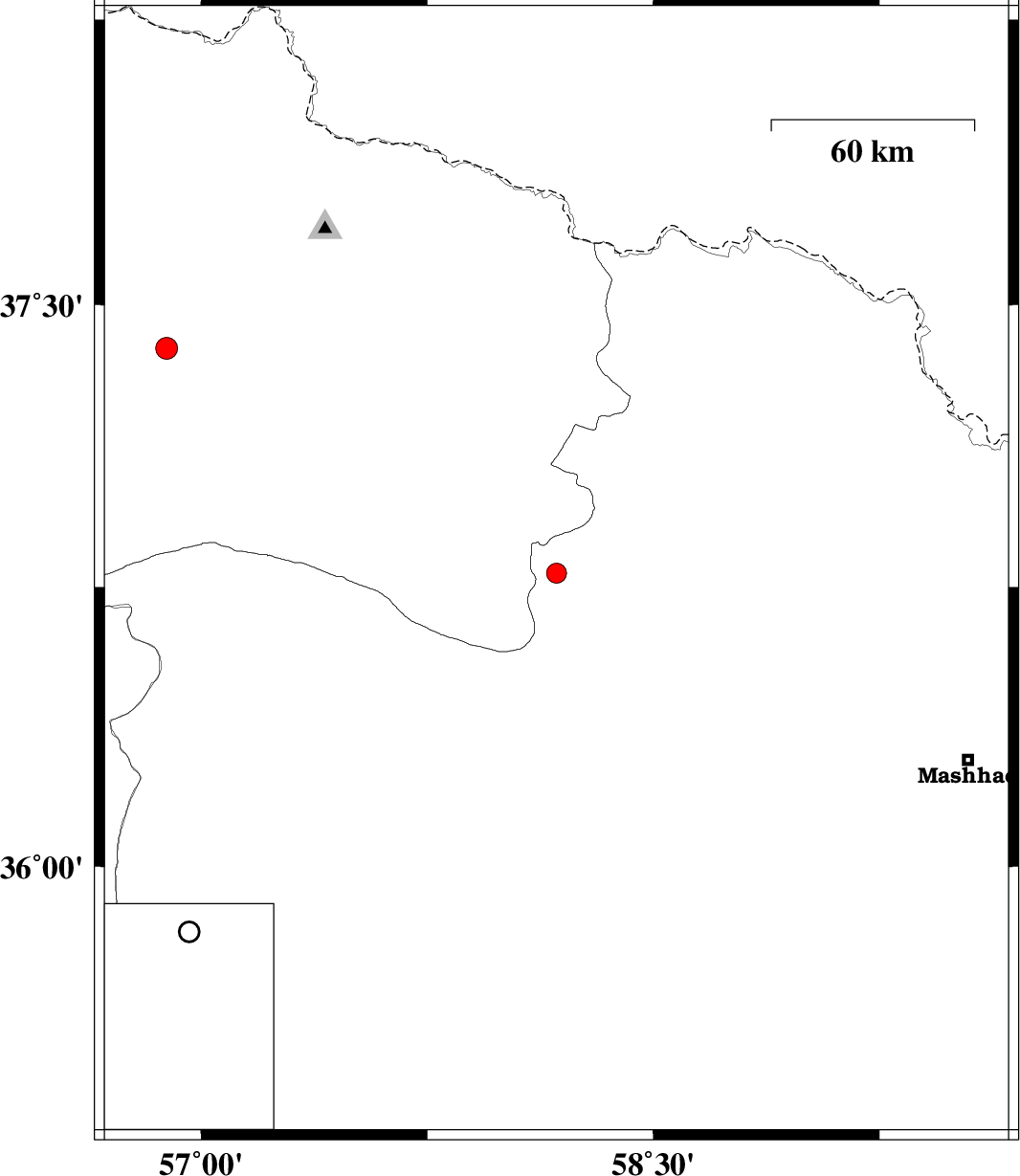 | 2016/12/09 | 15:41:22.4 | 19:11:22.4 | 36.787 | 58.179 | 15 | ML2.9 | Khorasan(center) Province, 46 km South-West of Quchan | ||