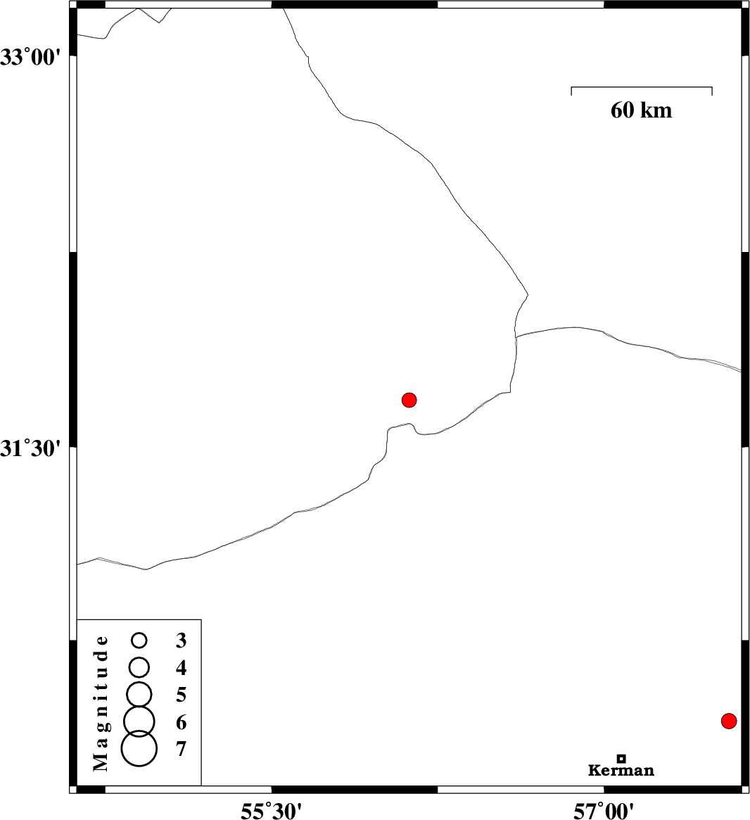 | 2016/12/06 | 13:37:57.5 | 17:07:57.5 | 30.434 | 57.564 | 14 | ML3.1 | Kerman Province, 49 km North-East of Kerman |