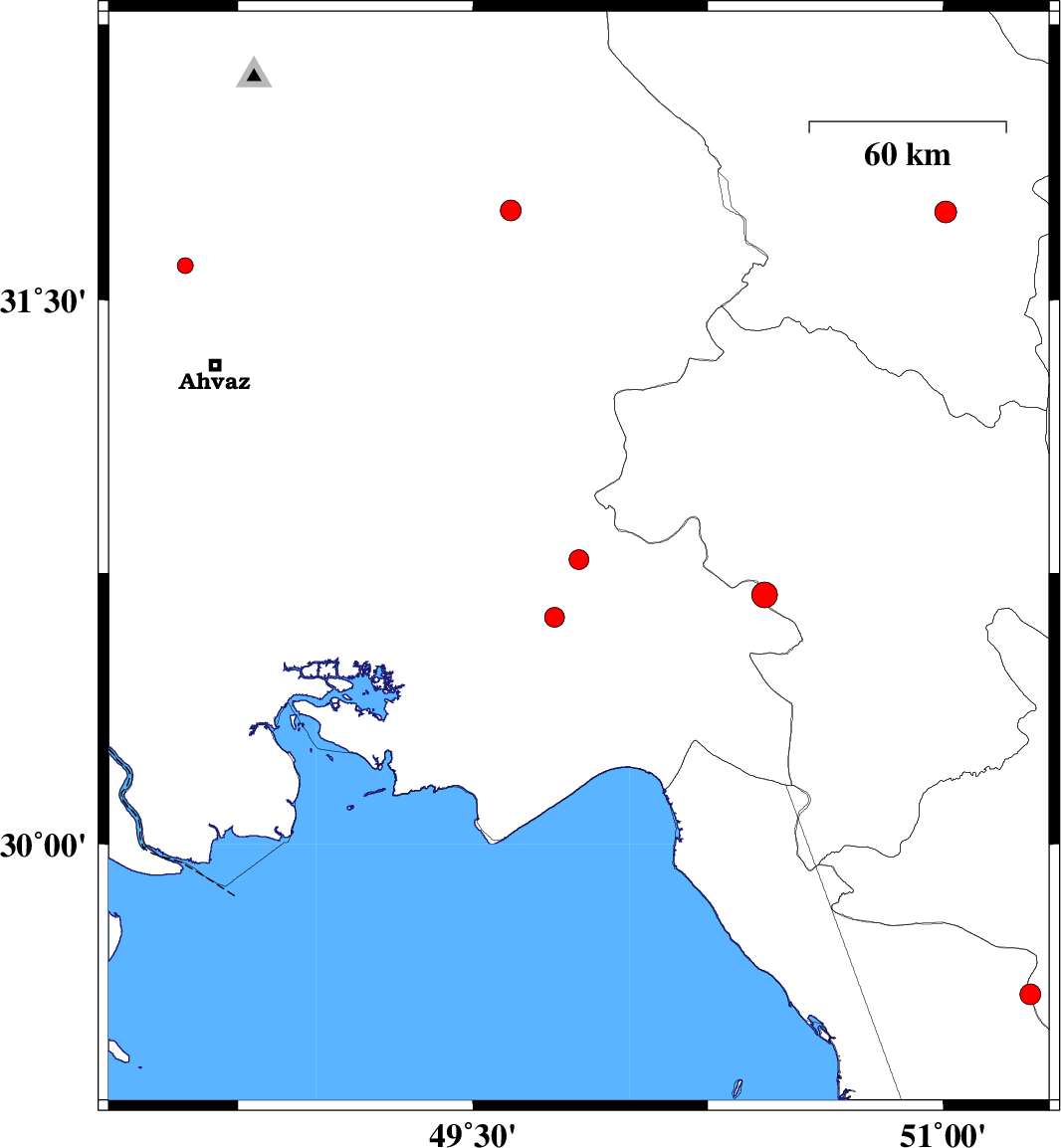| 2016/12/02 | 20:15:18.4 | 23:45:18.4 | 31.593 | 48.583 | 15 | ML2.3 | Khoozestan Province, 32 km North of Ahvaz | ||