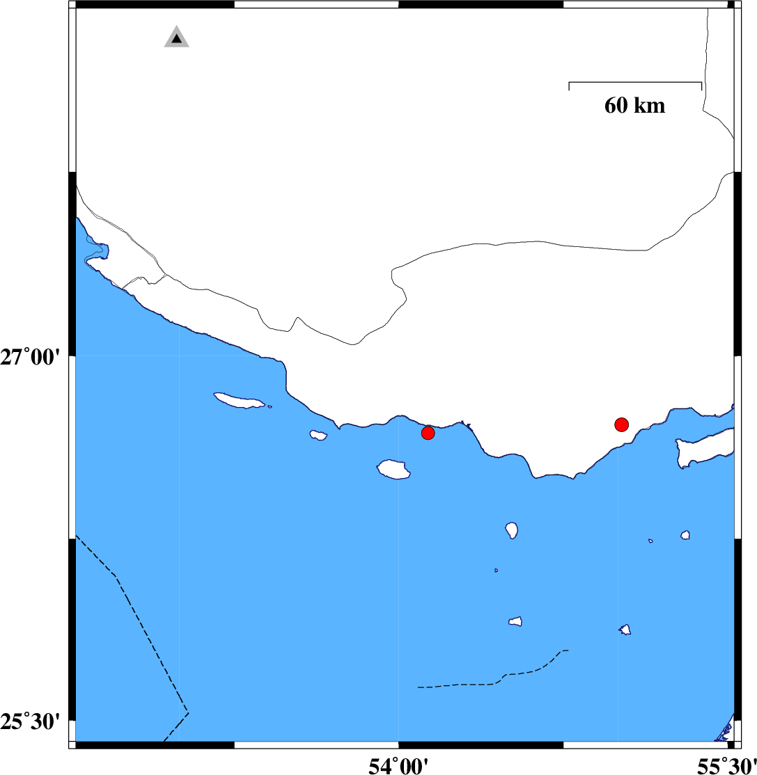 | 2016/12/09 | 16:06:07.5 | 19:36:07.5 | 26.165 | 54.91 | 15 | ML3.4 | Persian Gulf, 35 km North-West of Abu Musa | ||