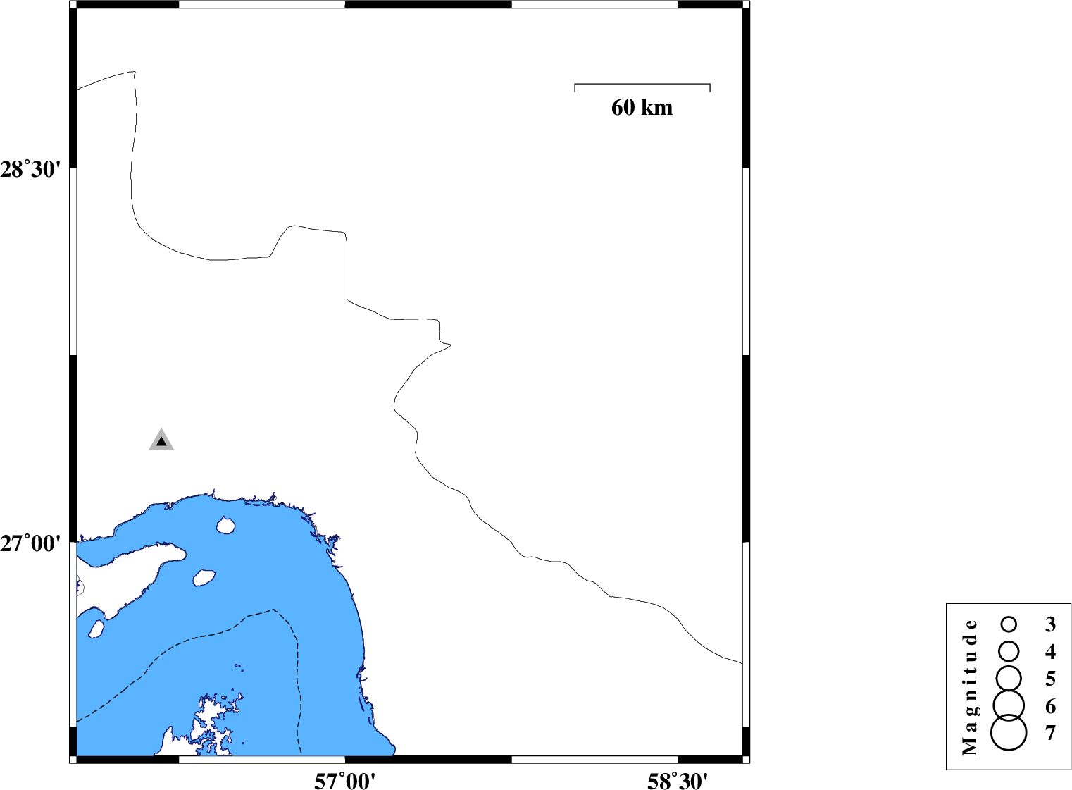 | 2016/12/13 | 19:35:12.5 | 23:05:12.5 | 27.673 | 57.226 | 14 | ML3 | Hormozgan Province, 27 km North of Dehbarez | ||
