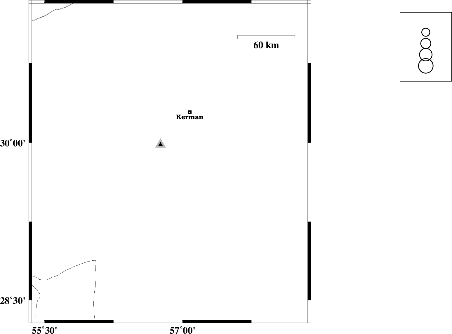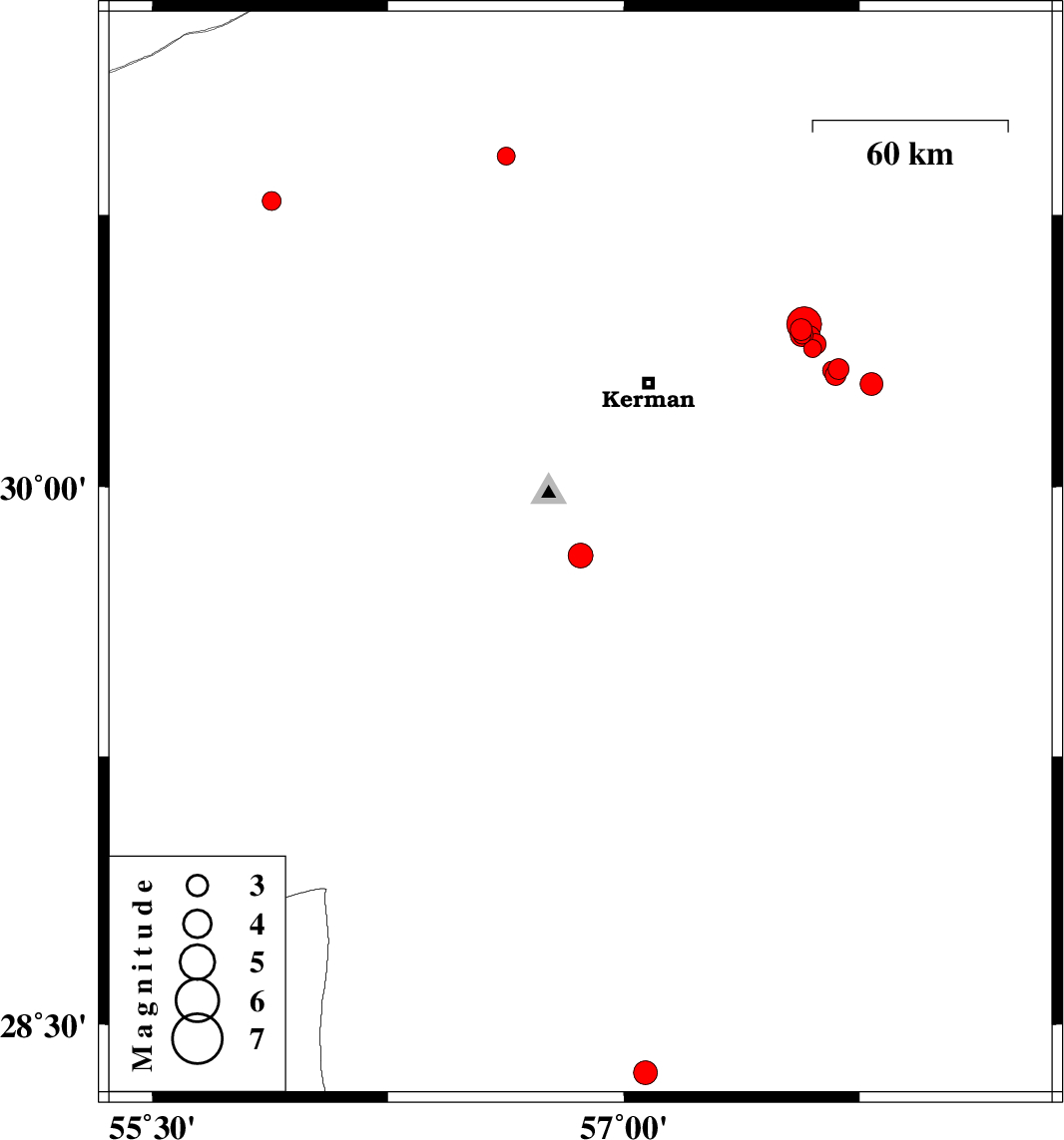 | 2016/12/01 | 10:43:59.3 | 14:13:59.3 | 30.419 | 57.566 | 14 | ML3.2 | Kerman Province, 49 km North-East of Kerman | ||