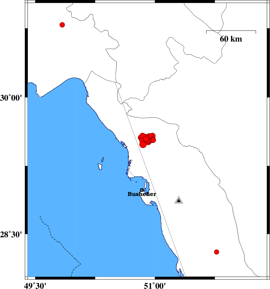 | 2016/12/18 | 17:28:21.9 | 20:58:21.9 | 29.579 | 50.944 | 15 | ML2.8 | Bushehr Province, 42 km -East of Bandar-e genaveh | ||