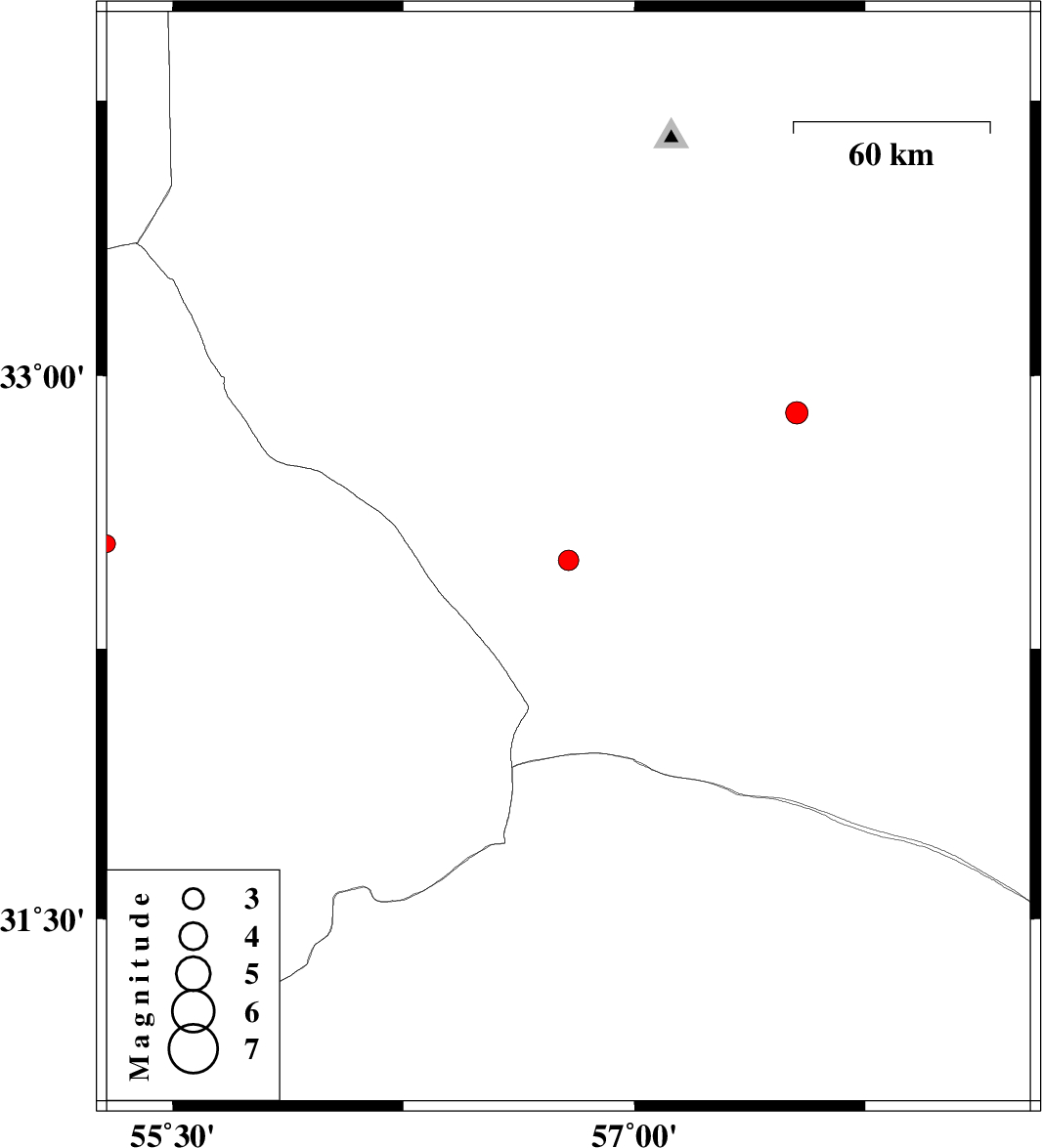 | 2016/12/22 | 04:25:51.4 | 07:55:51.4 | 32.899 | 57.528 | 8 | ML3.3 | Yazd Province, 96 km South-East of Tabas | ||