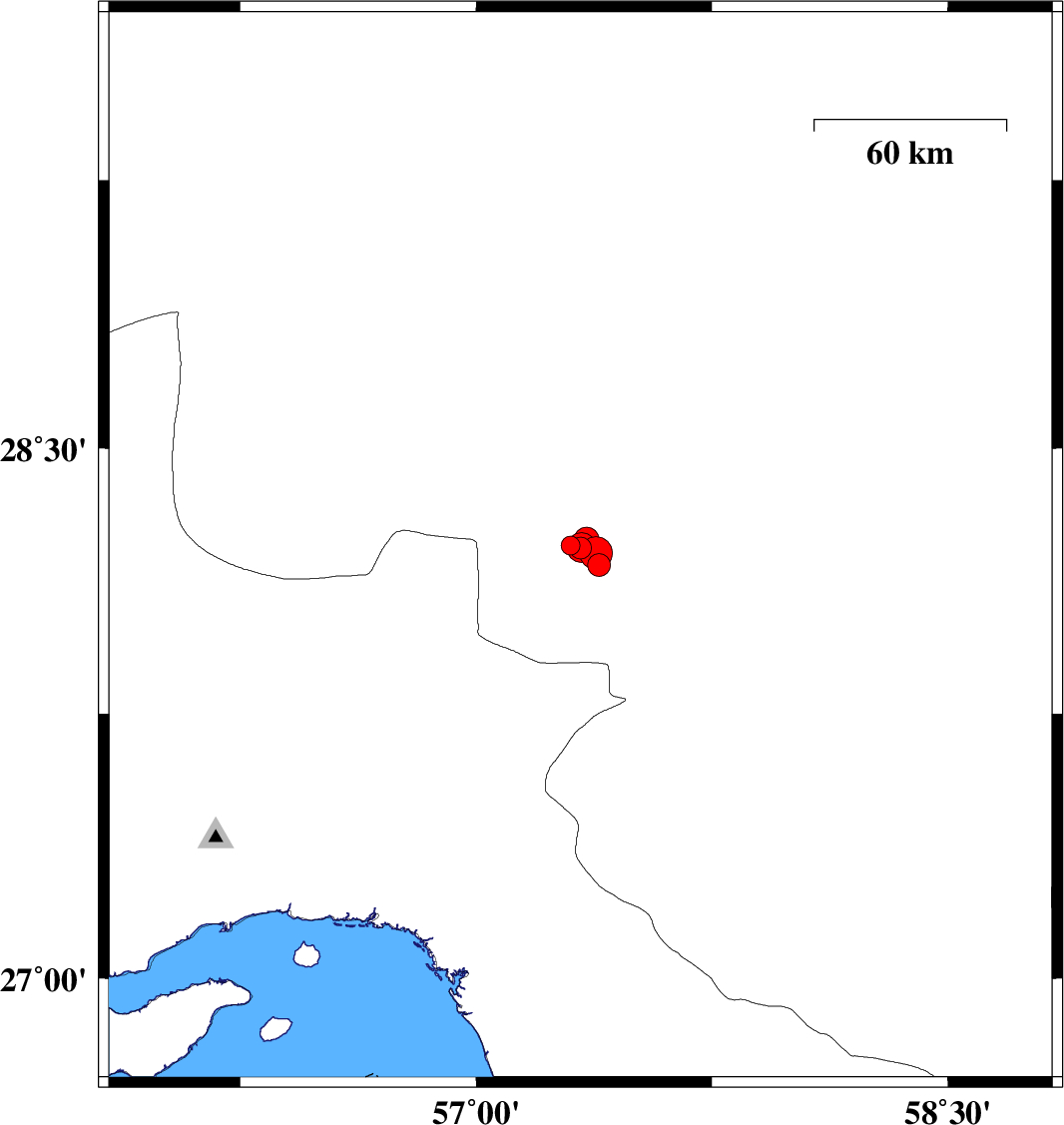 2016/12/27 12:41:27.6 16:11:27.6 28.20557.38115 ML4.6 Kerman Province, 42 km North-West of Kahnuj