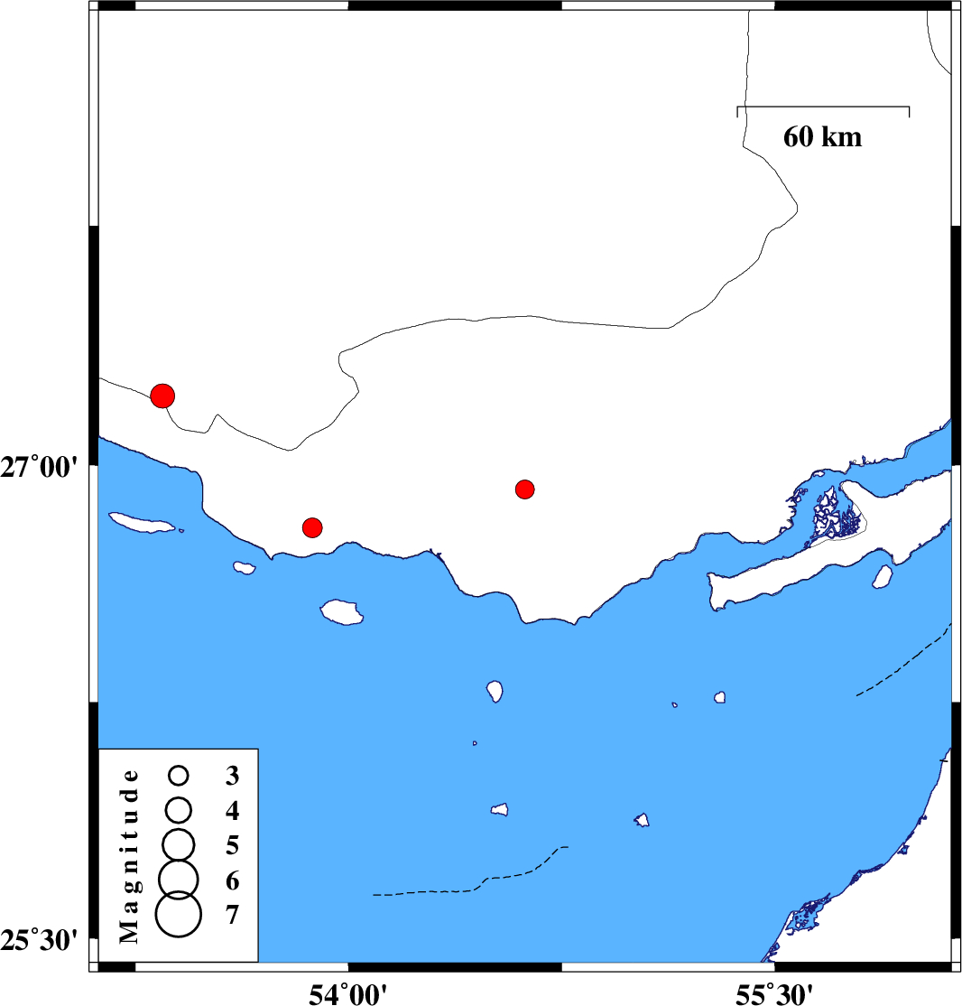 2016/12/30 | 19:47:37.1 | 23:17:37.1 | 27.217 | 53.346 | 15 | ML3.8 | Fars Province, 22 km South-East of Lamerd |