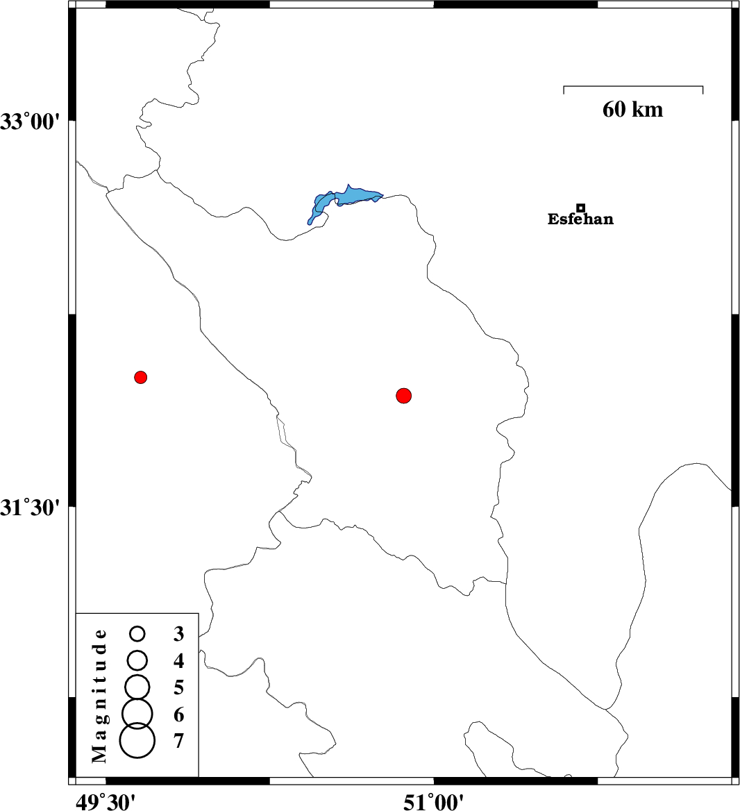 | 2017/01/06 | 08:22:03.2 | 11:52:03.2 | 31.933 | 50.862 | 15 | ML3.1 | Chaharmahal Bakhtiari Province, 21 km -East of Ardel | ||