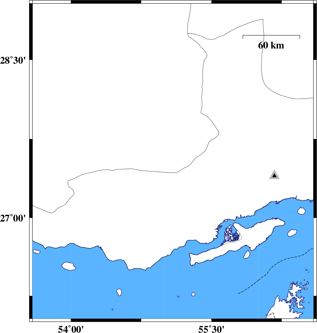 2017/01/07 | 23:29:11.6 | 02:59:11.6 | 27.531 | 55.089 | 17 | ML2.9 | Fars Province, 76 km South-East of Lar | ||