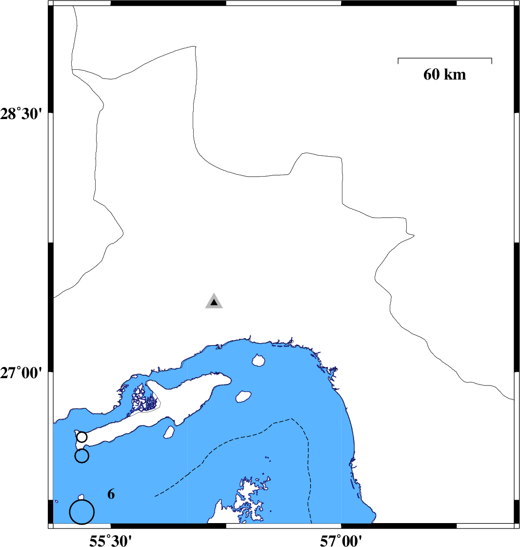 2017/01/10 | 17:28:04.7 | 20:58:04.7 | 27.613 | 56.625 | 17 | ML2.8 | Hormozgan Province, 59 km North-East of Bandar-e abbas | ||