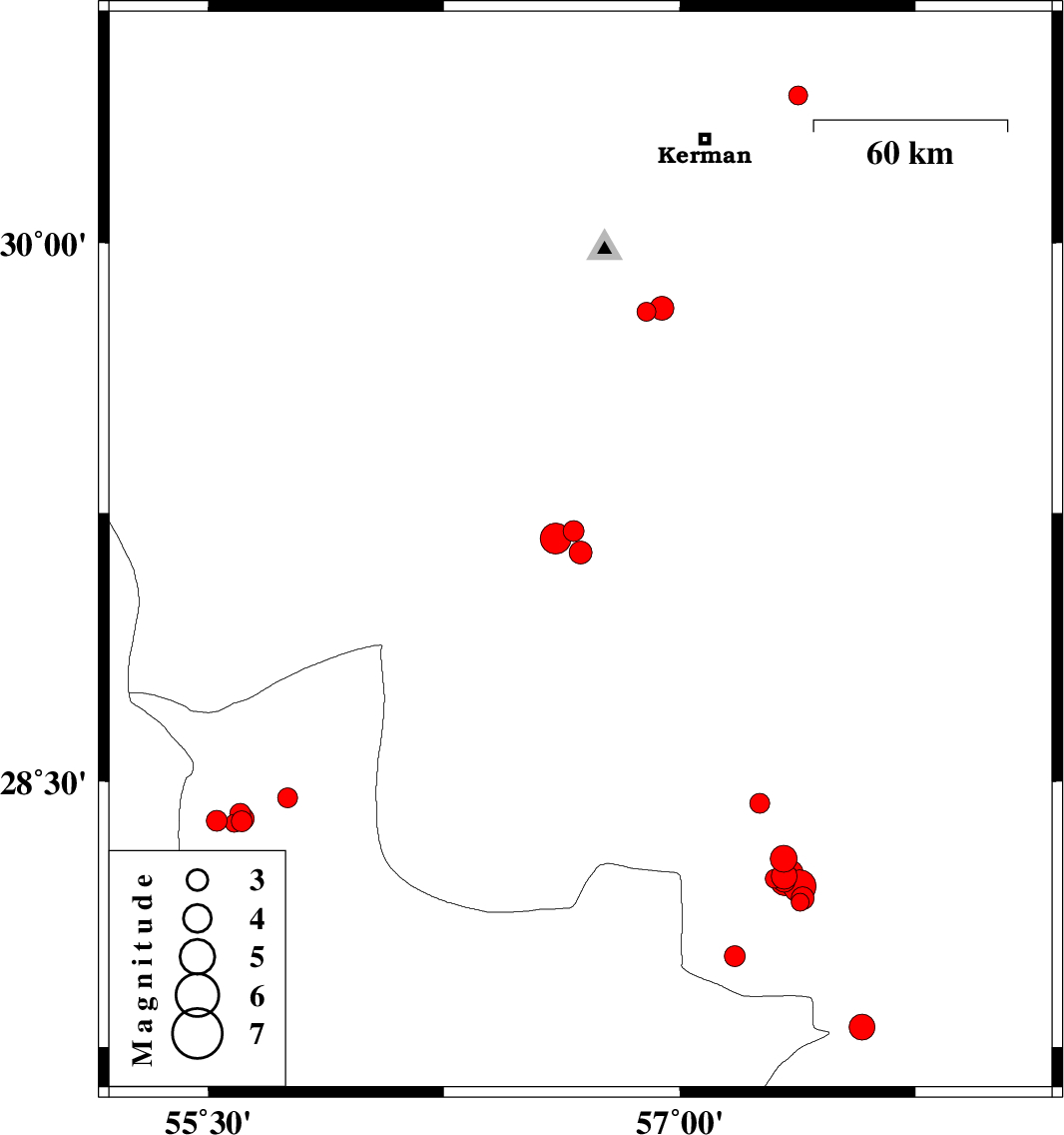 2016/12/27 | 12:26:38.3 | 15:56:38.3 | 28.22 | 57.335 | 15 | ML4.2 | Kerman Province, 46 km North-West of Kahnuj | ||