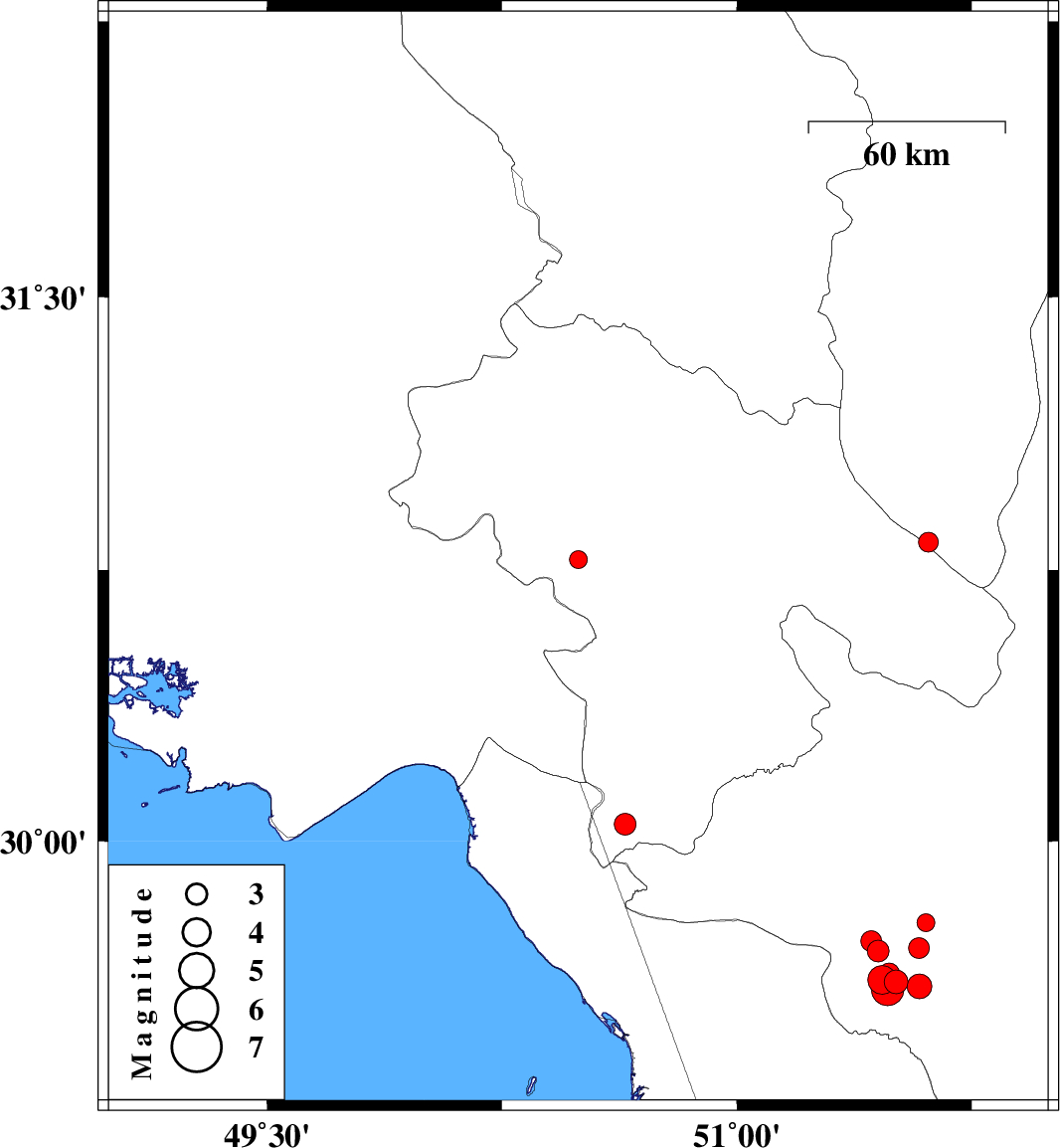 2017/01/20 | 04:48:21.9 | 08:18:21.9 | 29.694 | 51.452 | 15 | ML3.1 | Fars Province, 21 km -West of Kazerun | ||