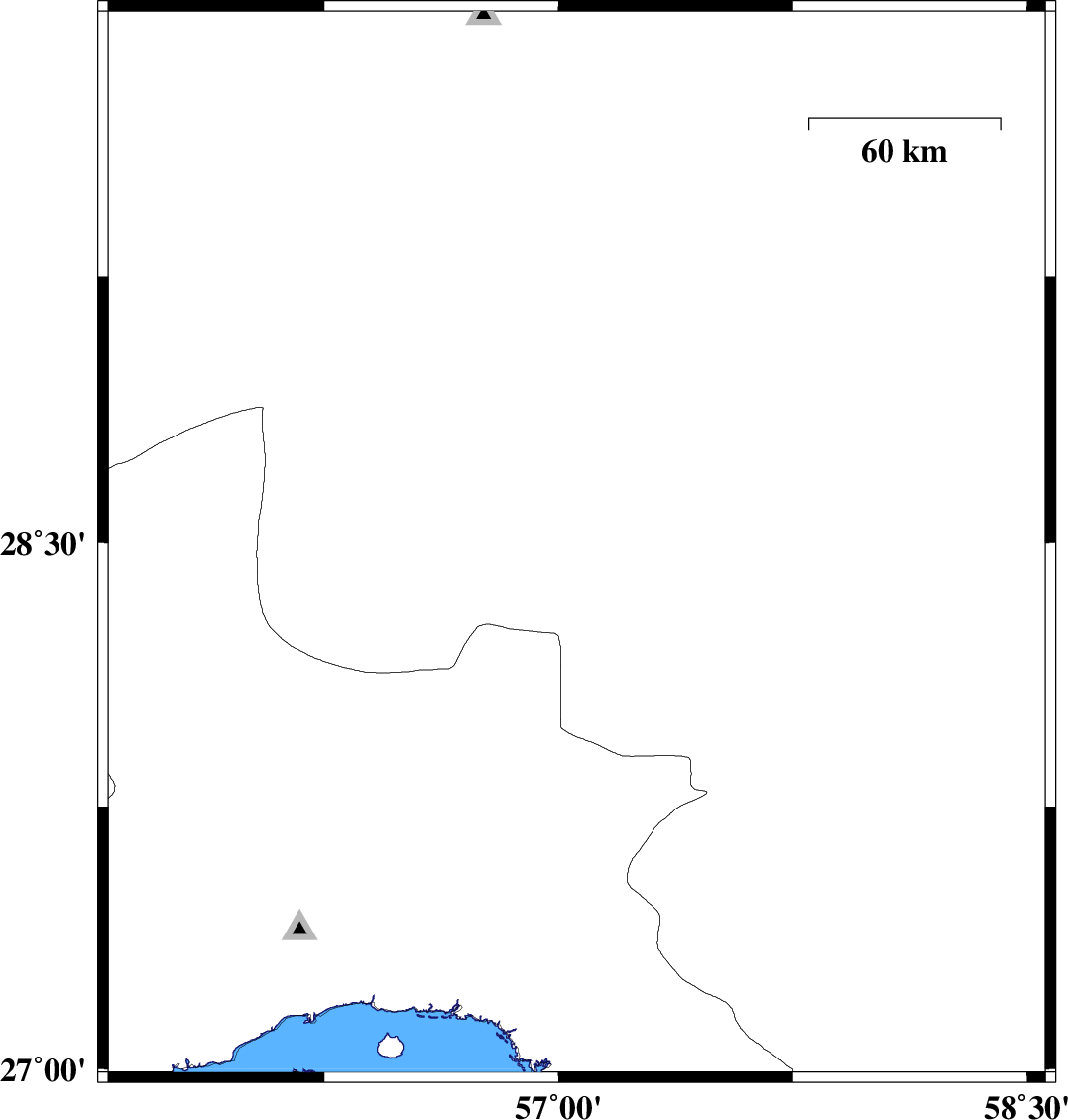 | 2017/01/25 | 12:36:47.1 | 16:06:47.1 | 28.551 | 57.003 | 14 | ML2.2 | Kerman Province, 73 km South-West of Jiroft | ||