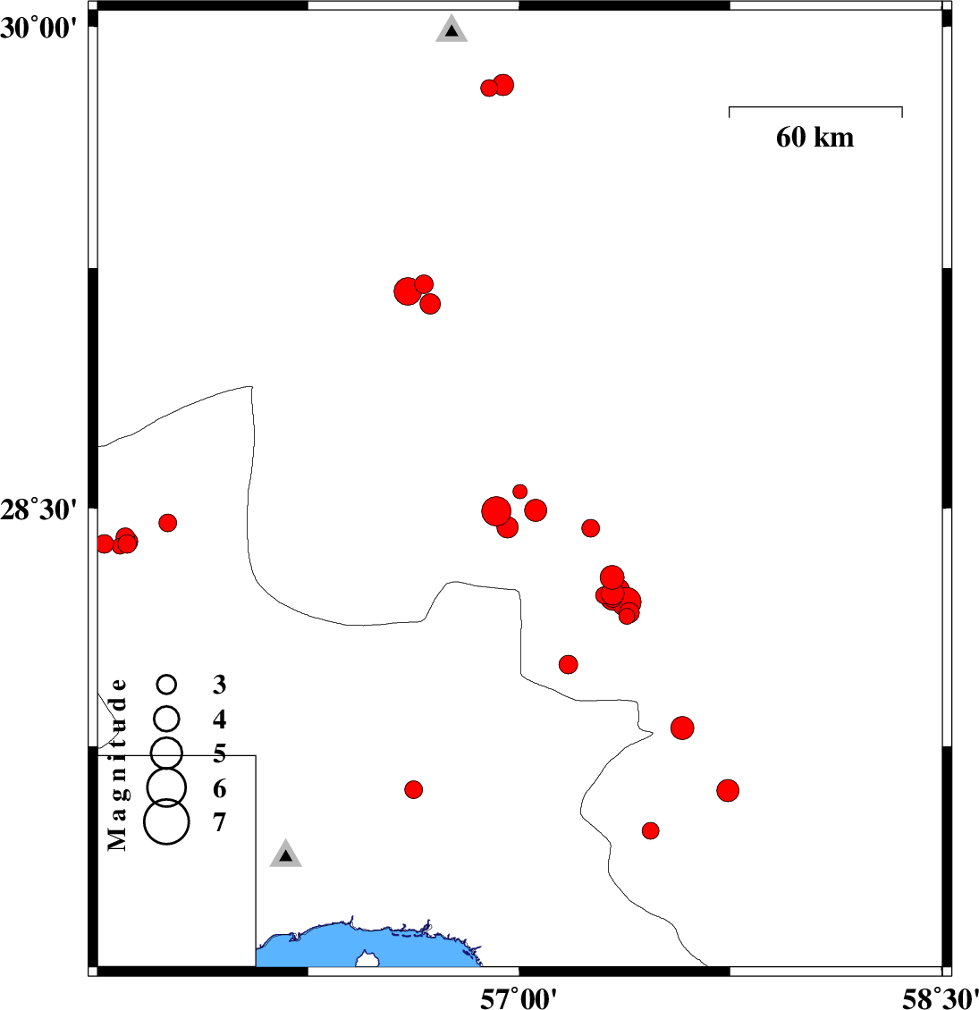 | 2017/01/21 | 08:23:14.1 | 11:53:14.1 | 29.178 | 56.605 | 29 | ML4.4 | Kerman Province, 6 km of Baft | ||