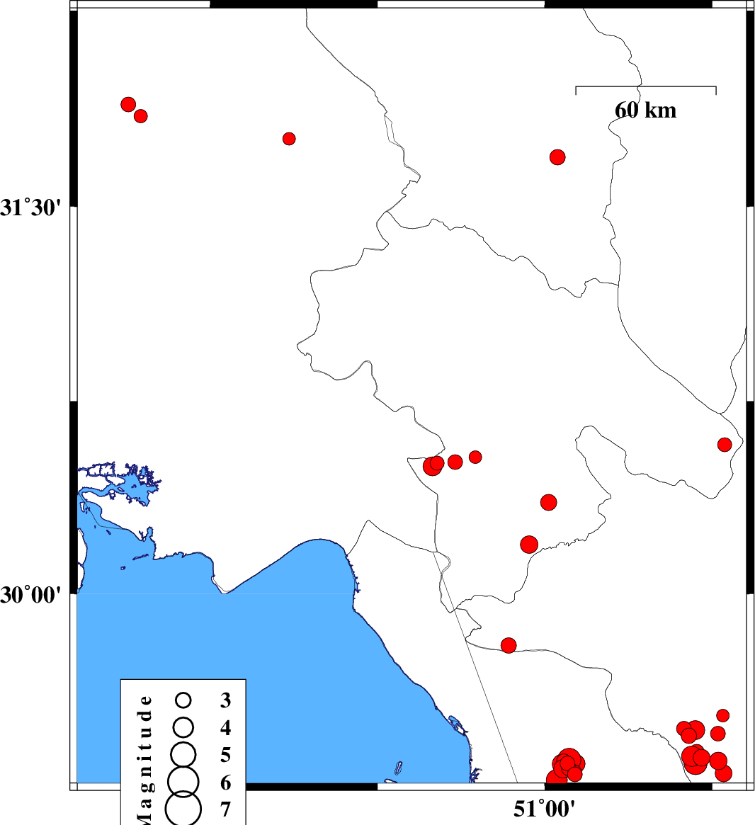 2017/01/02 | 00:32:38.6 | 04:02:38.6 | 29.585 | 50.945 | 6 | ML3.7 | Bushehr Province, 42 km -East of Bandar-e genaveh | ||