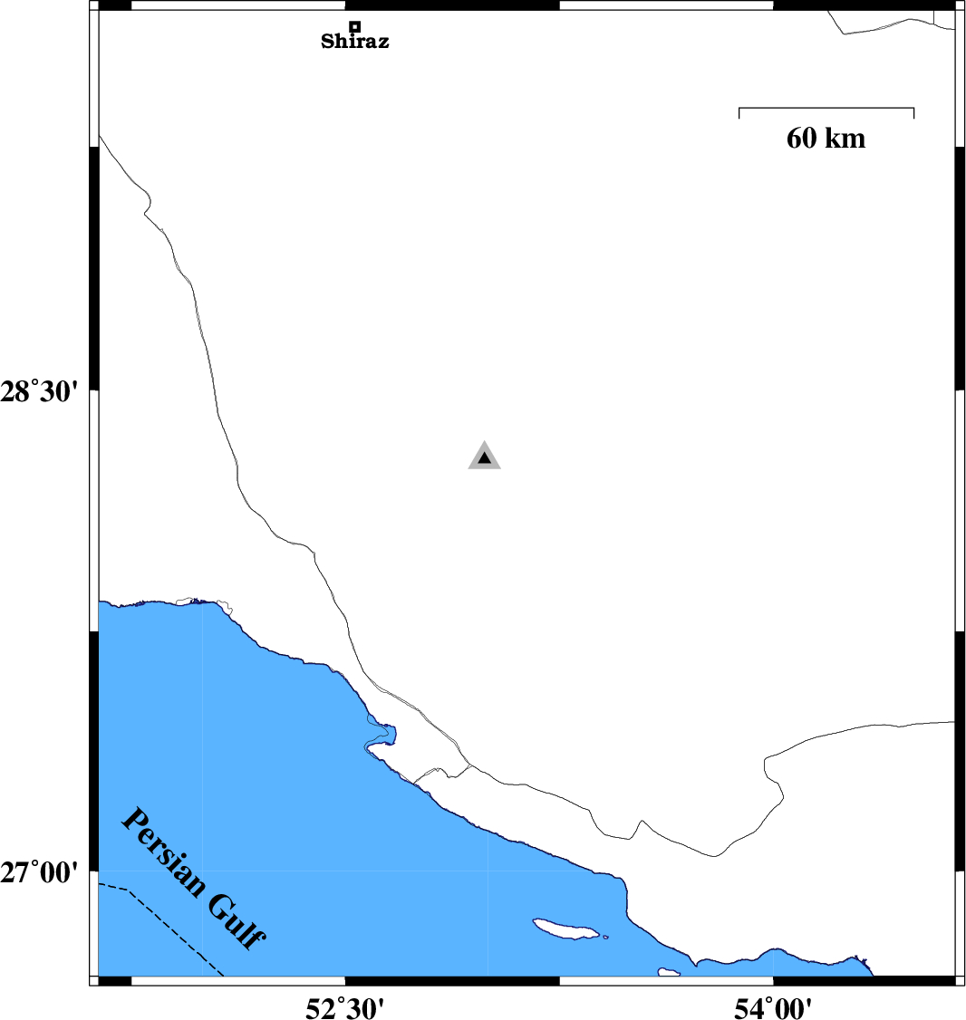 | 2017/02/02 | 21:58:08.3 | 01:28:08.3 | 28.17 | 53.136 | 6 | ML2.7 | Fars Province, 34 km South-East of Qir va Karzin | ||