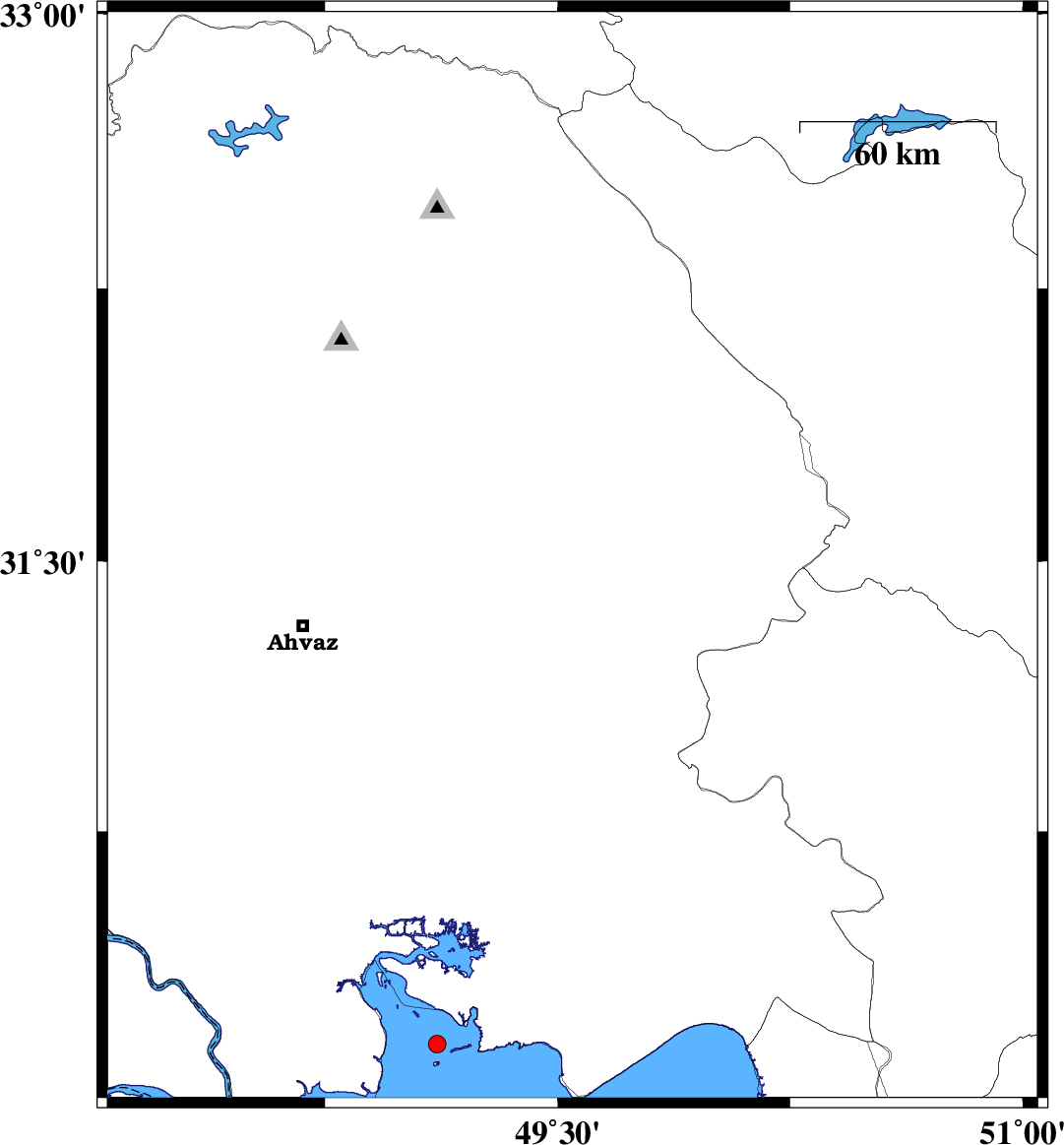| 2017/01/09 | 16:57:01.1 | 20:27:01.1 | 32.09 | 48.994 | 15 | ML2.7 | Khoozestan Province, 14 km -East of Shushtar | ||