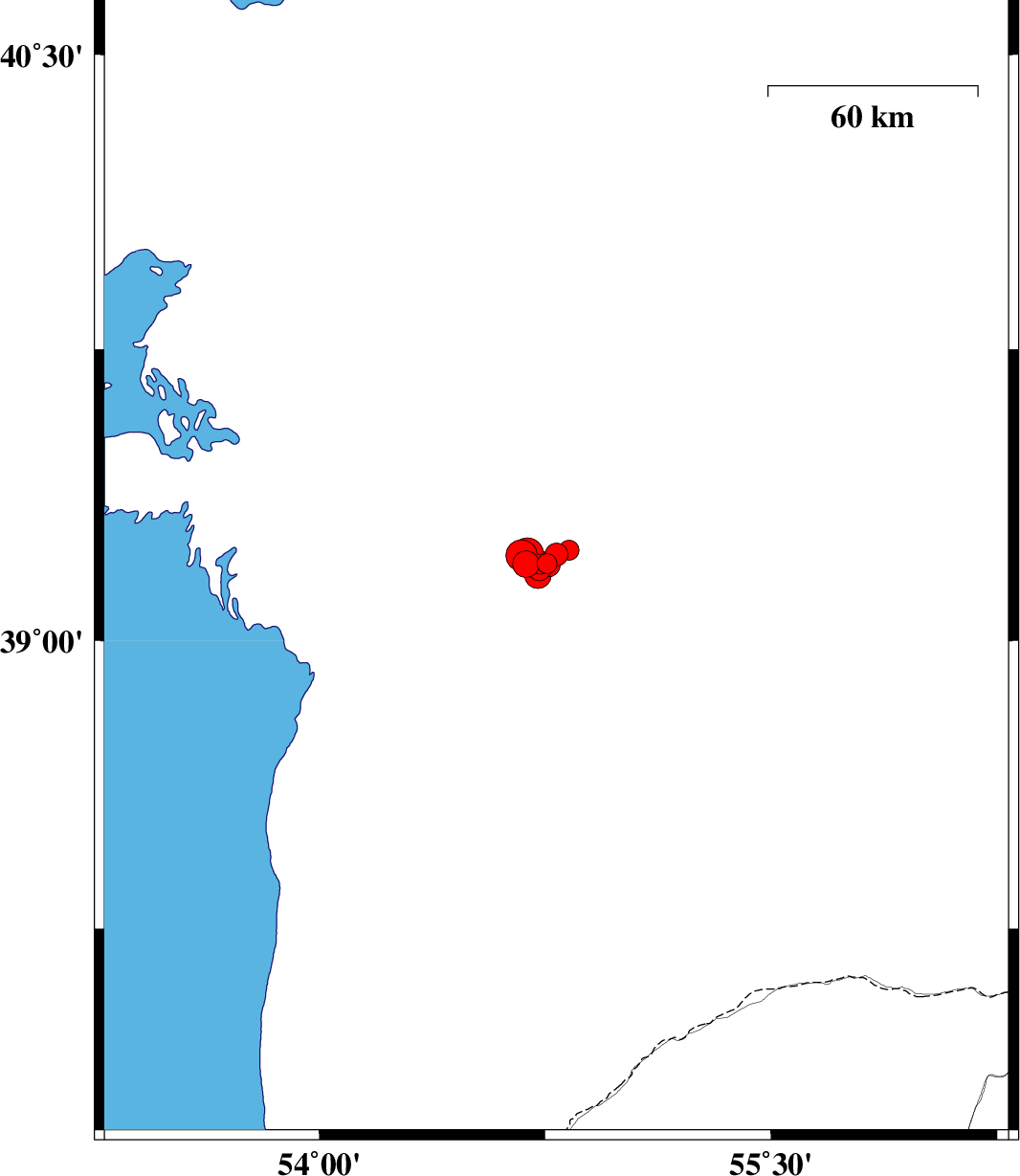 Map Region : lat:37.722-40.722  lon:53.288-56.288