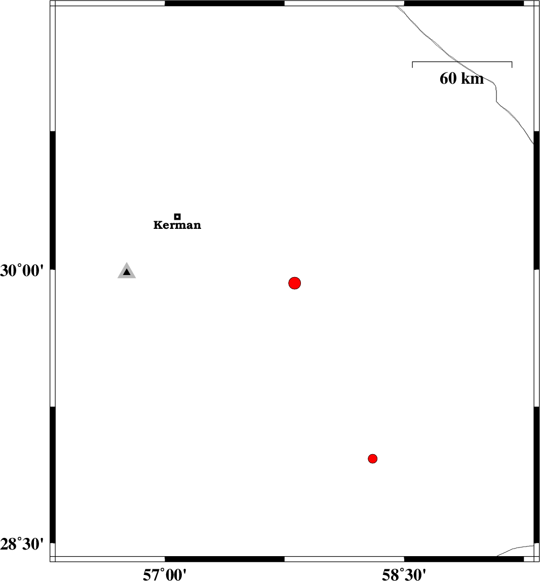 | 2017/02/08 | 22:25:16.3 | 01:55:16.3 | 28.964 | 58.302 | 14 | ML2.5 | Kerman Province, 17 km South of Bam |