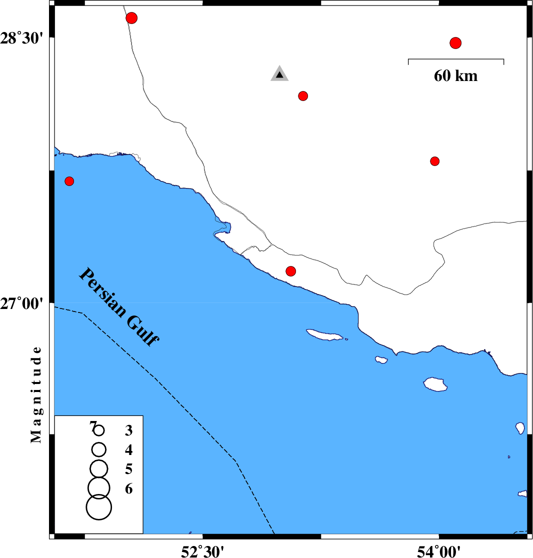 2017/01/14 | 11:33:20.0 | 15:03:20.0 | 27.69 | 51.652 | 14 | ML2.6 | Persian Gulf, 43 km South-West of Bandar-e kangan |