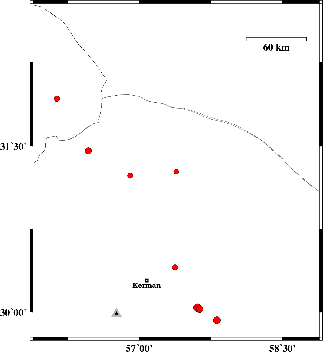 | 2017/01/31 | 10:49:40.6 | 14:19:40.6 | 31.234 | 56.906 | 14 | ML2.6 | Kerman Province, 10 km of Ravar | ||