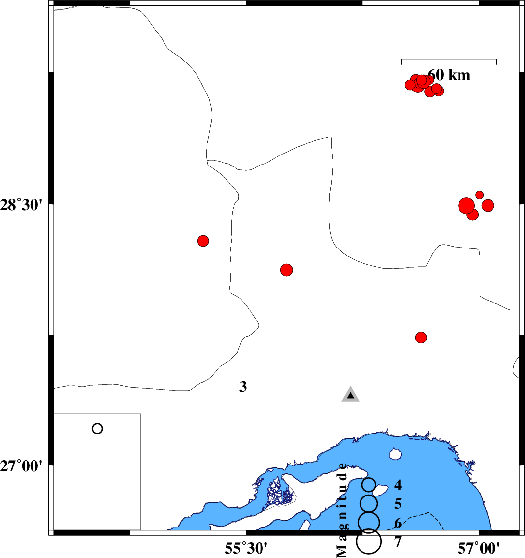 2017/02/03 | 15:33:52.3 | 19:03:52.3 | 27.735 | 56.626 | 14 | ML3.3 | Hormozgan Province, 70 km North-East of Bandar-e abbas | ||