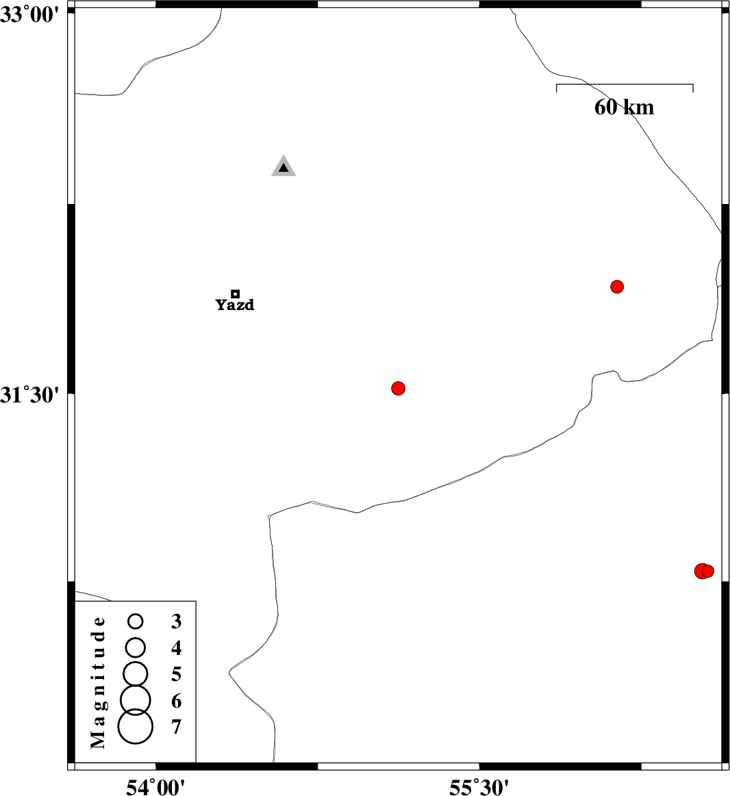 | 2017/01/27 | 11:13:37.6 | 14:43:37.6 | 31.923 | 56.138 | 14 | ML2.7 | Yazd Province, 78 km North-East of Bafq |