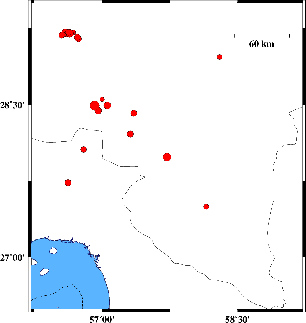 | 2017/02/22 | 01:57:18.2 | 05:27:18.2 | 27.986 | 57.719 | 28 | ML4 | Kerman Province, 5 km of Kahnuj | ||