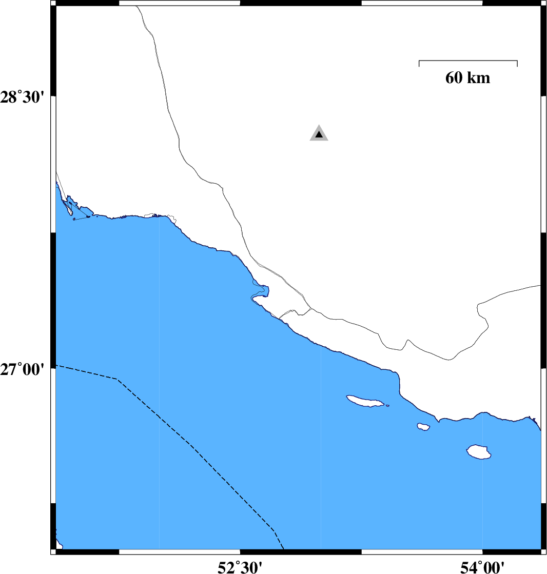 | 2017/02/21 | 10:02:00.5 | 13:32:00.5 | 28.078 | 53.029 | 14 | ML2.6 | Fars Province, 43 km South of Qir va Karzin | ||