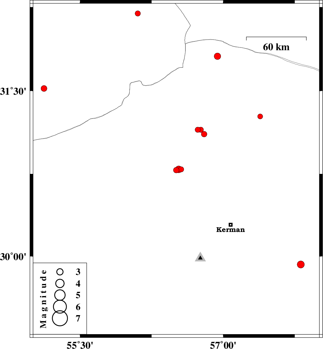 | 2017/02/27 | 11:12:43.1 | 14:42:43.1 | 31.811 | 56.94 | 14 | ML3.1 | Kerman Province, 62 km North-East of Ravar | ||