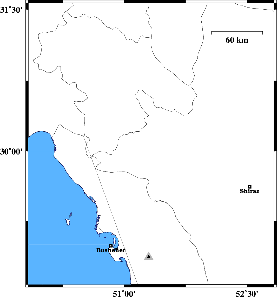 | 2017/02/24 | 03:47:59.1 | 07:17:59.1 | 29.146 | 51.514 | 14 | ML3.3 | Bushehr Province, 33 km South-East of Borazjan | ||