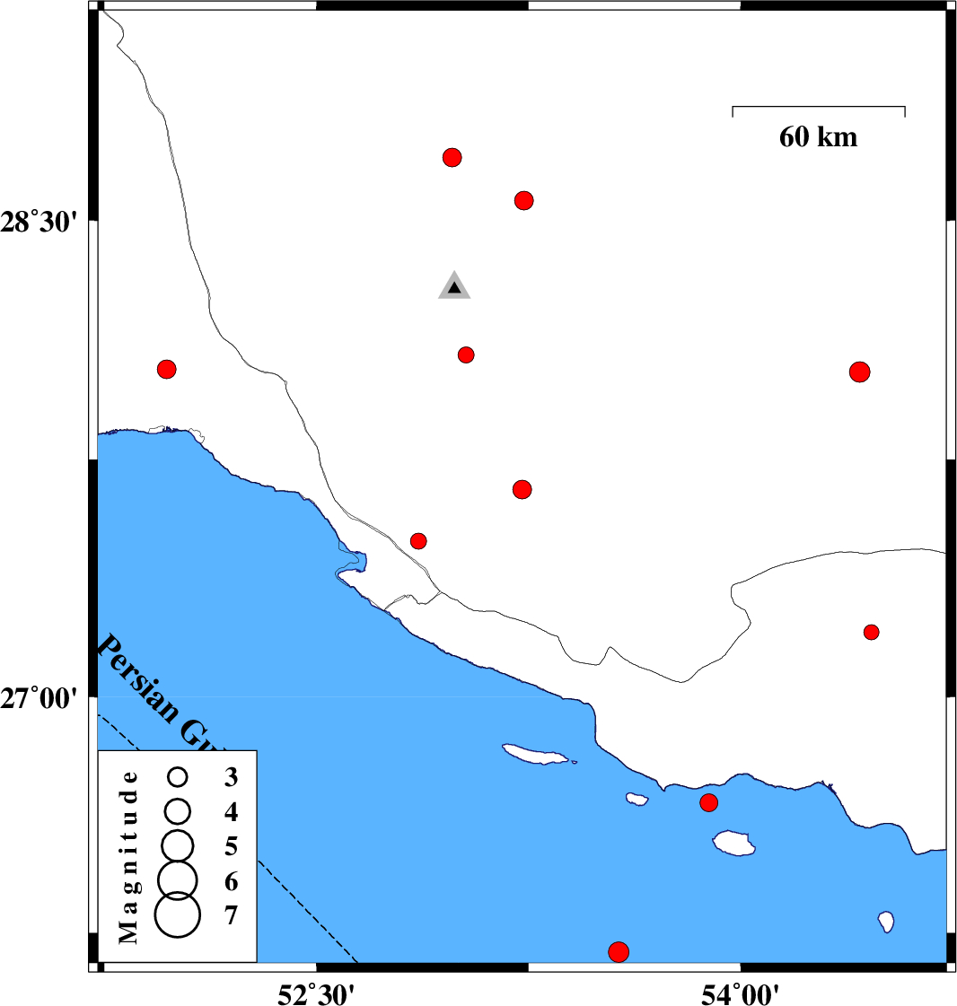 | 2017/03/05 | 14:50:23.5 | 18:20:23.5 | 26.664 | 53.888 | 14 | ML2.8 | Persian Gulf, 76 km South-West of Bastak | ||