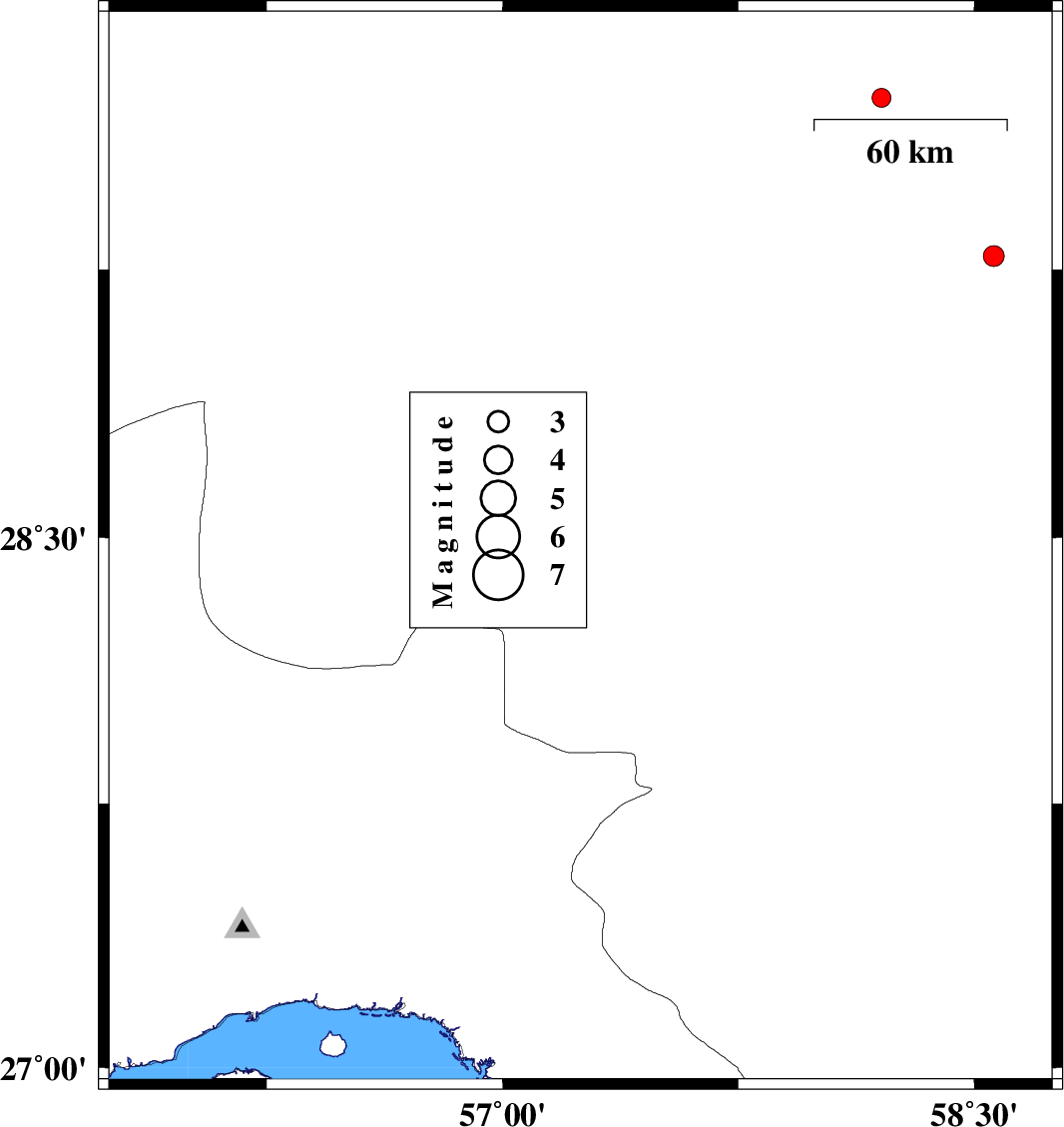 2017/03/13 | 06:51:56.4 | 10:21:56.4 | 28.024 | 57.606 | 14 | ML2.9 | Kerman Province, 12 km of Kahnuj | ||