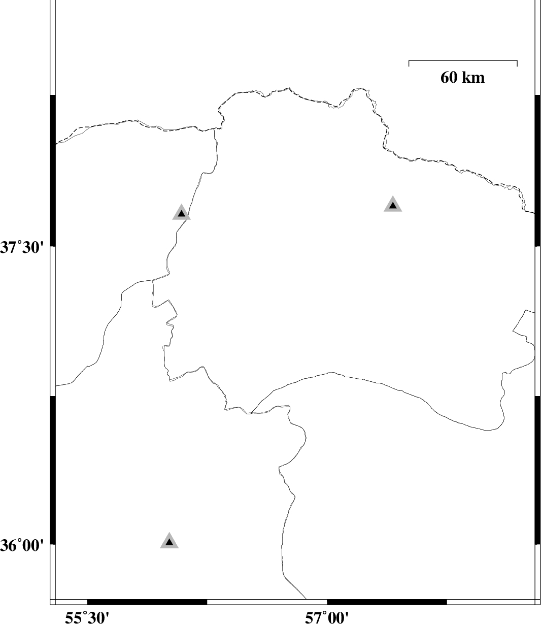 | 2017/03/23 | 02:32:25.6 | 07:02:25.6 | 37.22 | 56.8 | 15 | ML3.3 | Khorasan(north) Province, 39 km South-West of Ashkhaneh | ||