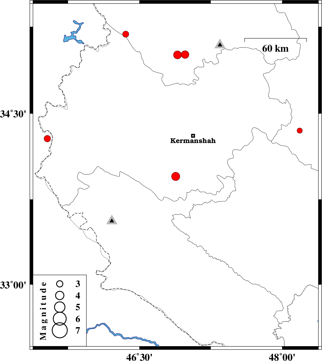 2017/03/24 | 13:39:54.3 | 18:09:54.3 | 33.951 | 46.881 | 14 | ML:3.9 | Kermanshah Province, 32 km South-East of Eslam Abad-E-Gharb | ||