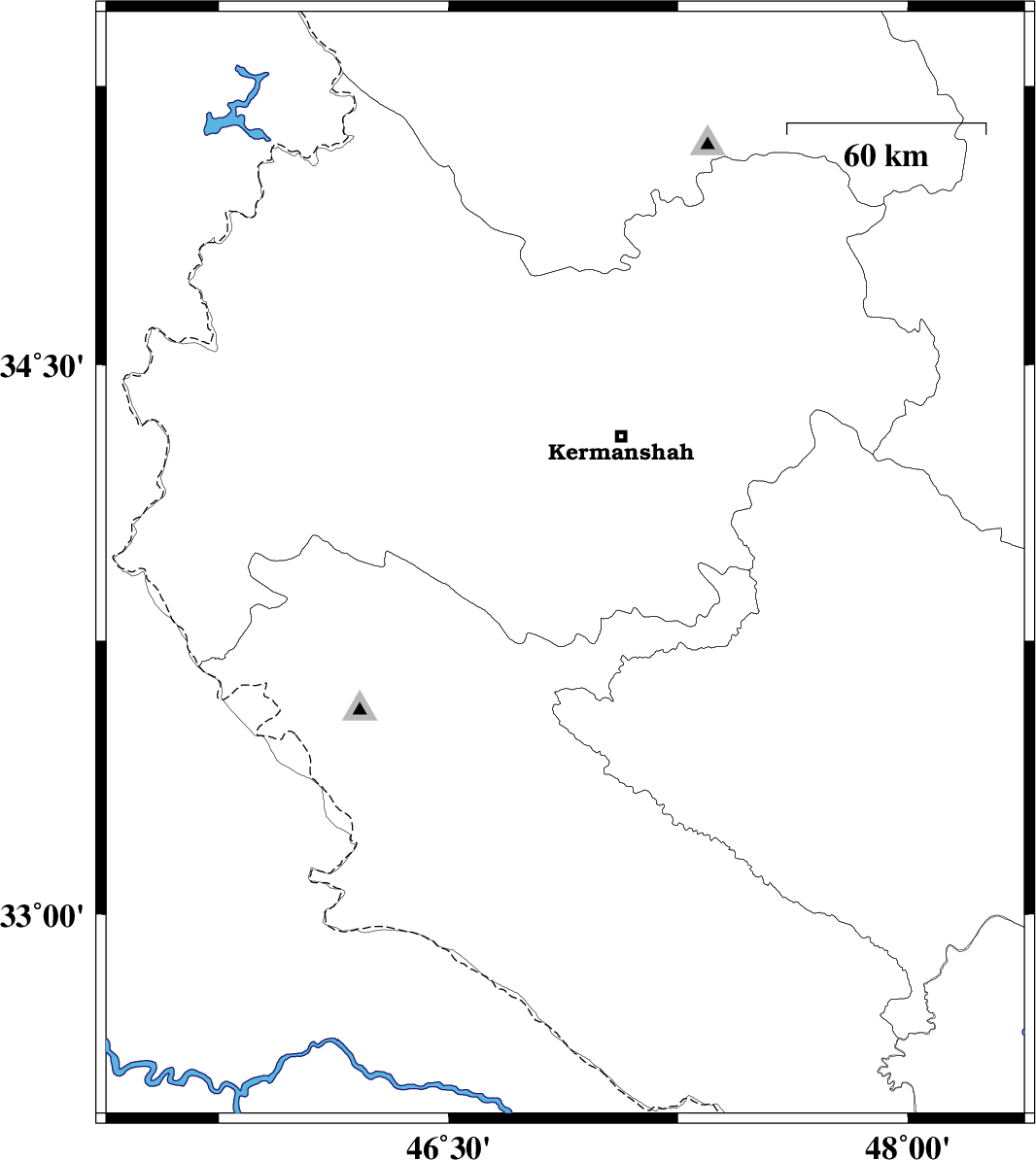 | 2017/03/24 | 13:39:54.3 | 18:09:54.3 | 33.951 | 46.881 | 14 | ML3.9 | Kermanshah Province, 32 km South-East of Eslam Abad-E-Gharb |