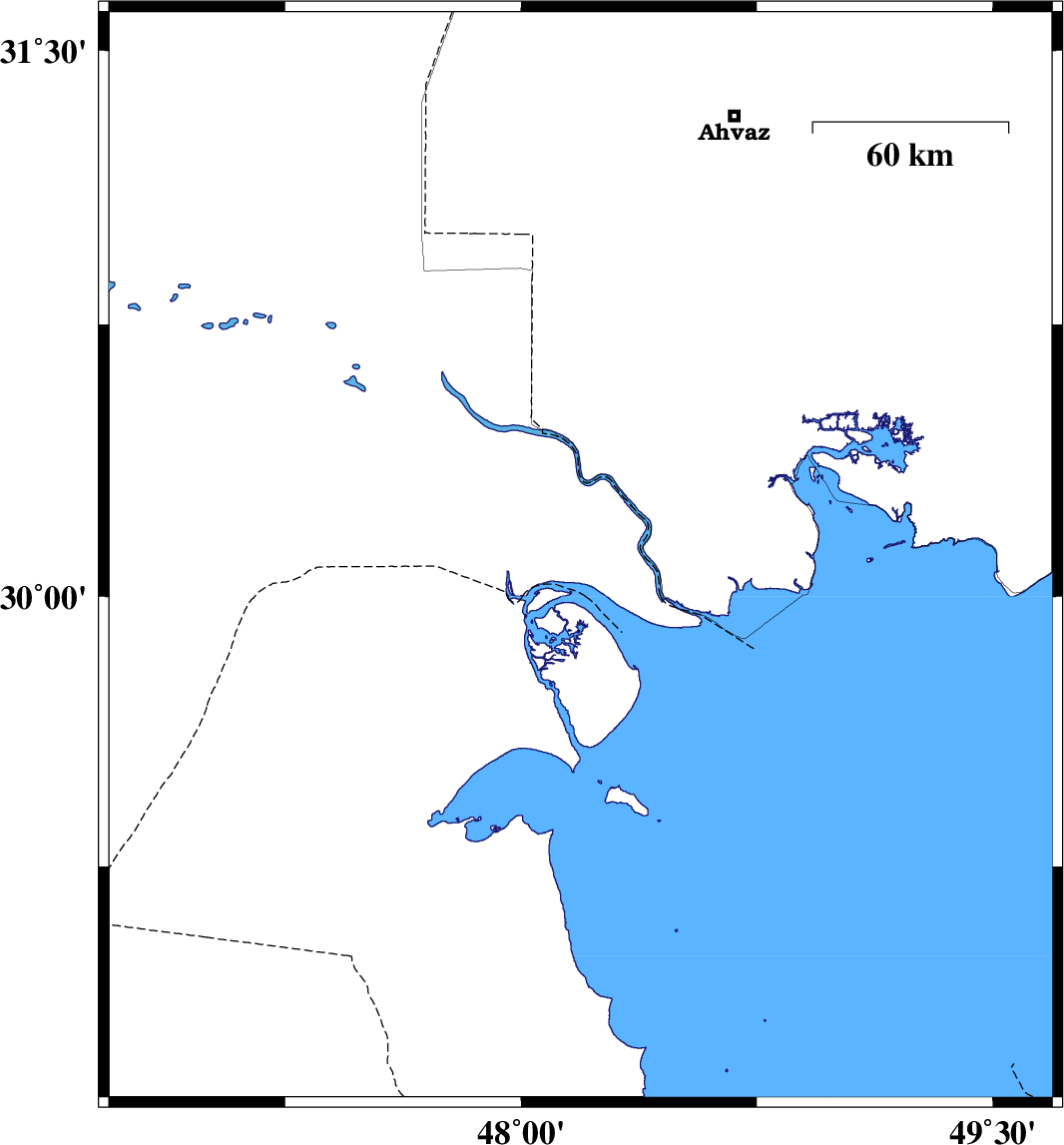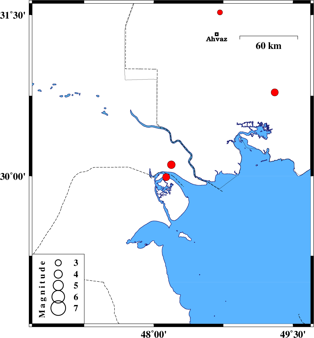 | 2017/03/19 | 22:36:36.0 | 02:06:36.0 | 29.991 | 48.133 | 15 | ML3.5 | Persian Gulf, 49 km South of Khorramshahr |