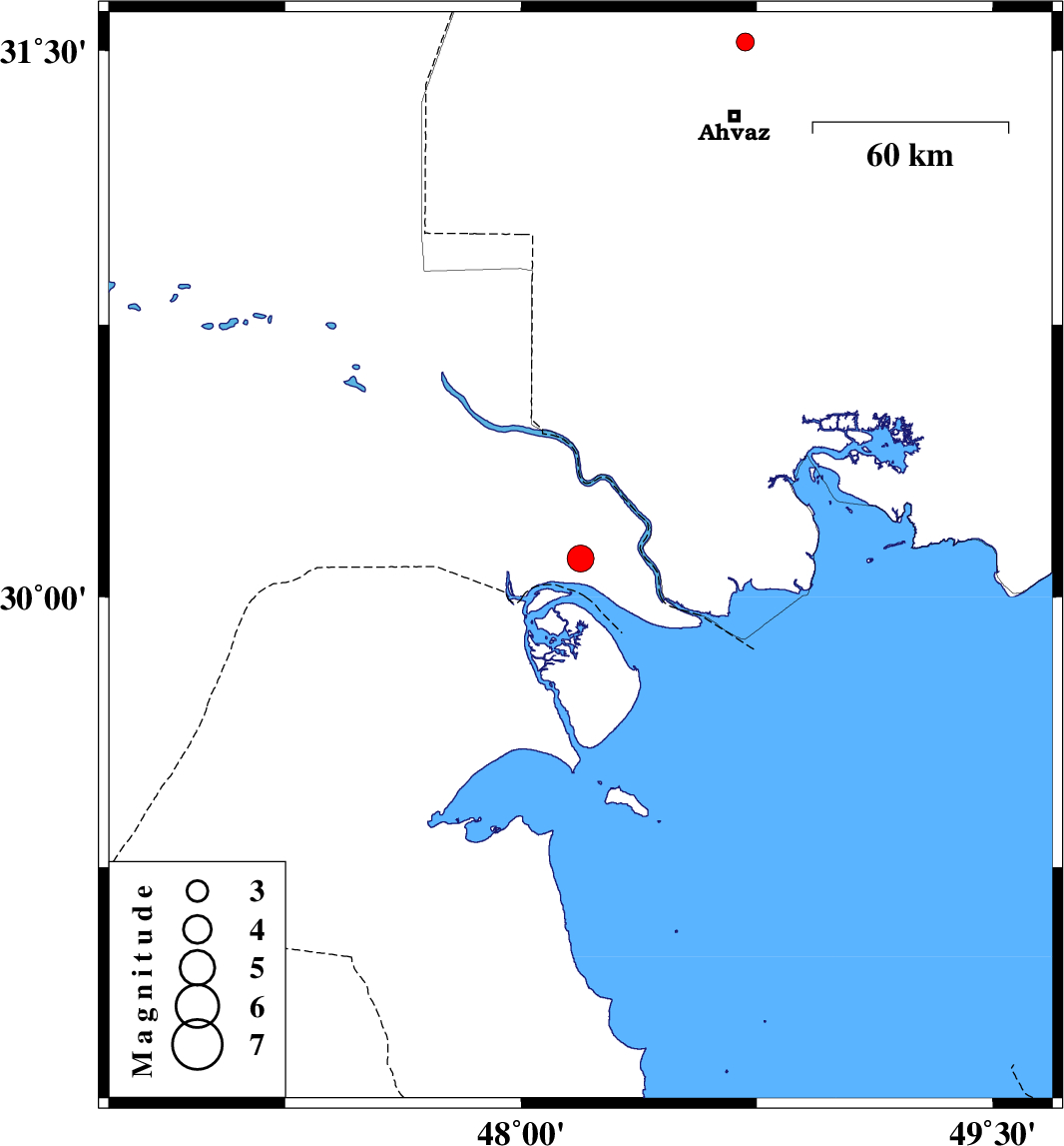 | 2017/03/27 | 01:56:53.6 | 06:26:53.6 | 31.523 | 48.713 | 15 | ML2.5 | Khoozestan Province, 23 km North of Ahvaz |